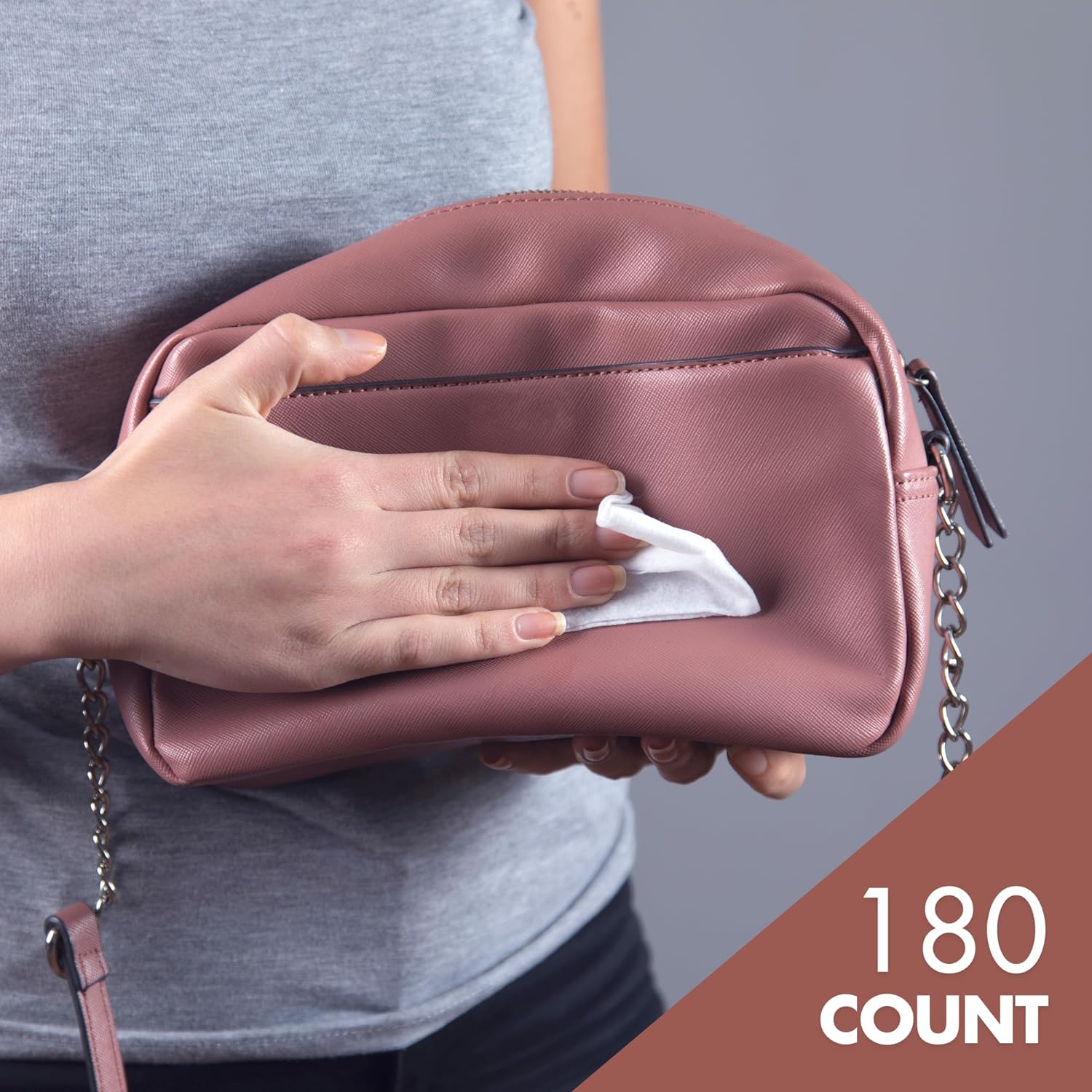Swanky Leather Wipes - Leather Cleaner and Conditioner for Purses, Shoes, Furniture Polish & Car Seats, Prevents Fading & Cracking, Restores Softness & Shine - Soft Wipes, 180 Count