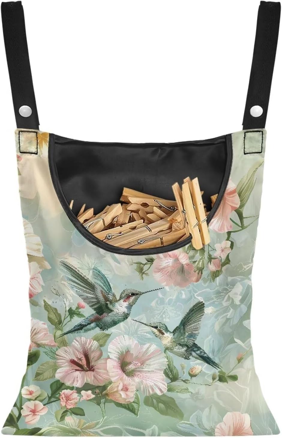 2 Pcs Hummingbird Clothespin Bag for Outdoor Laundry Clothesline and Clothes Pin Holder Clothespin Bag for Clothes Pins Heavy Duty Outdoor Use