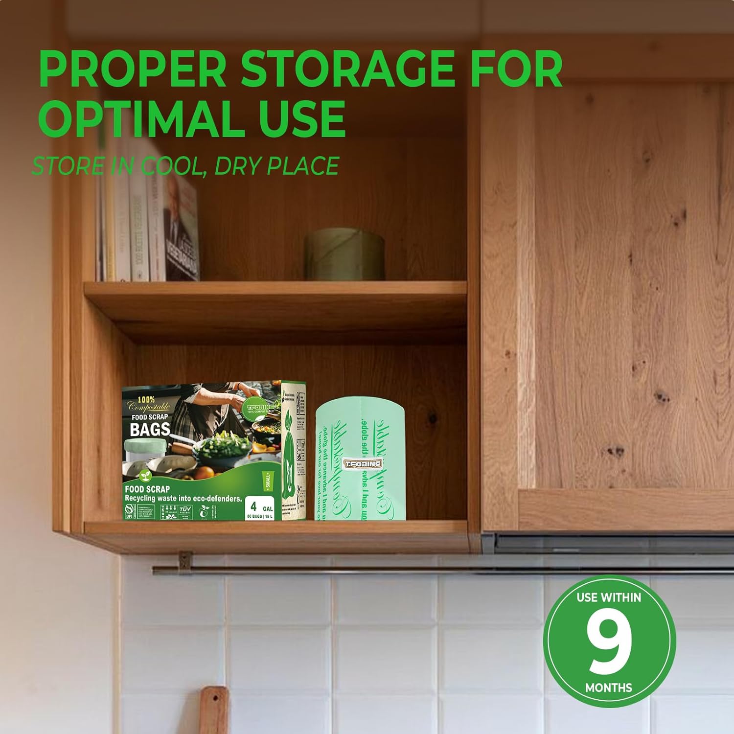 - 【4 Gallon Compost Bags】Just the right size to perfectly fit most small trash cans. The 4 gallon trash bags are 17.7” W x 19.7''H,0.8 Mil Thick,suitable for 15-20L Countertop Bin. 80 Bags Per Roll.