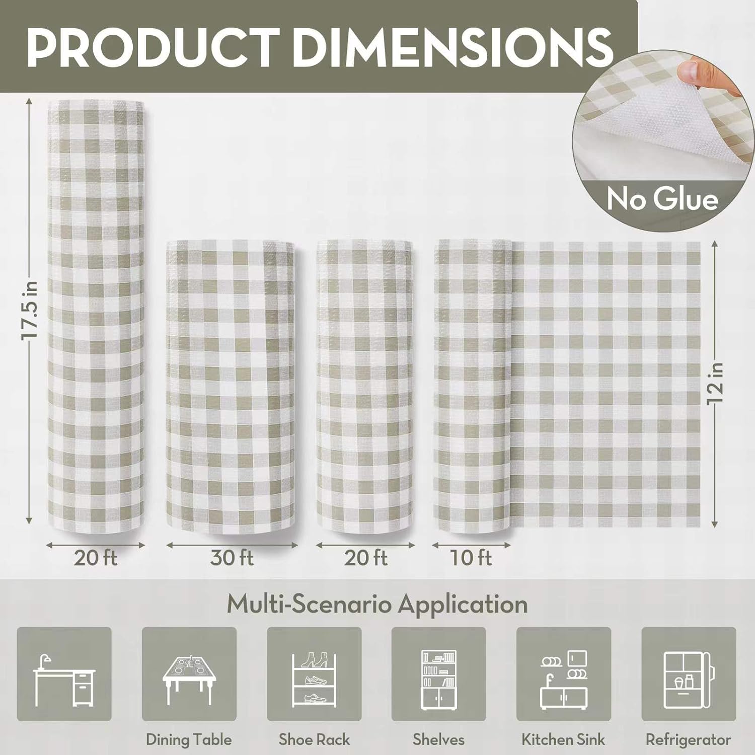 Drawer Shelf Liner, Non-Slip Kitchen Cabinet Liners Non-Adhesive Thick Strong Grip Waterproof Mats Protect Dresser Shelves Cupboard Bathroom Cabinets, Green Plaid, 17.5 in X 20 FT