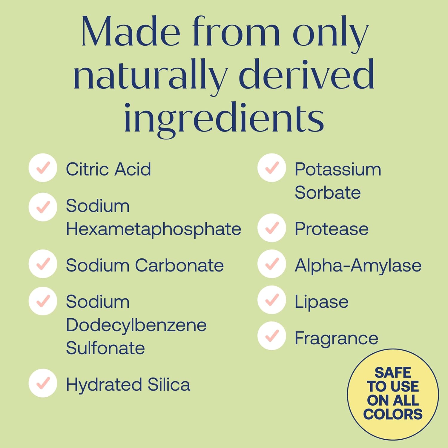 - Skin-Conscious Ingredients: These laundry tablets use plant-based enzymes formulated to be gentle on skin and fabrics, maintaining the colors of your clothes; ideal for use on baby clothes and accessories
