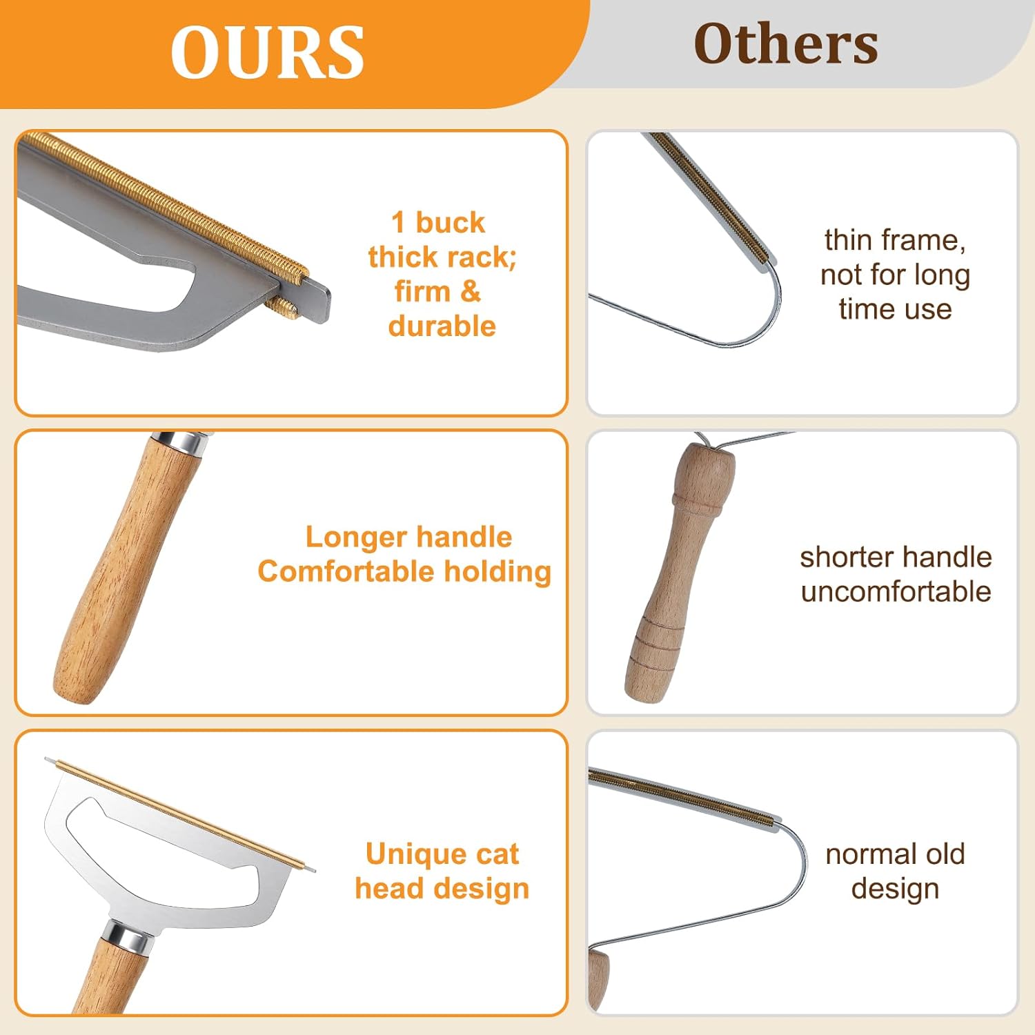 - Built to Last: Unlike flimsy alternatives, our pet hair remover features a robust steel plate(1 buck thick), an exclusive cat design, and longer than others ergonomic handle. The unique round edge design removes animal fur, lint, pills without damaging the fabric. This combination ensures durability, making it a long-term unmatched solution for pet hair woes.