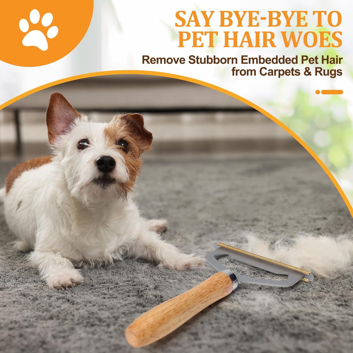 Metal Carpet Brush Pet Hair Remover, 1 Buck Thick Rack Wood Handle Portable Carpet Scraper, Embedded Couch Lint Pilling Dog Cat Fur Remover, Fabric Shaver Depiller Furniture