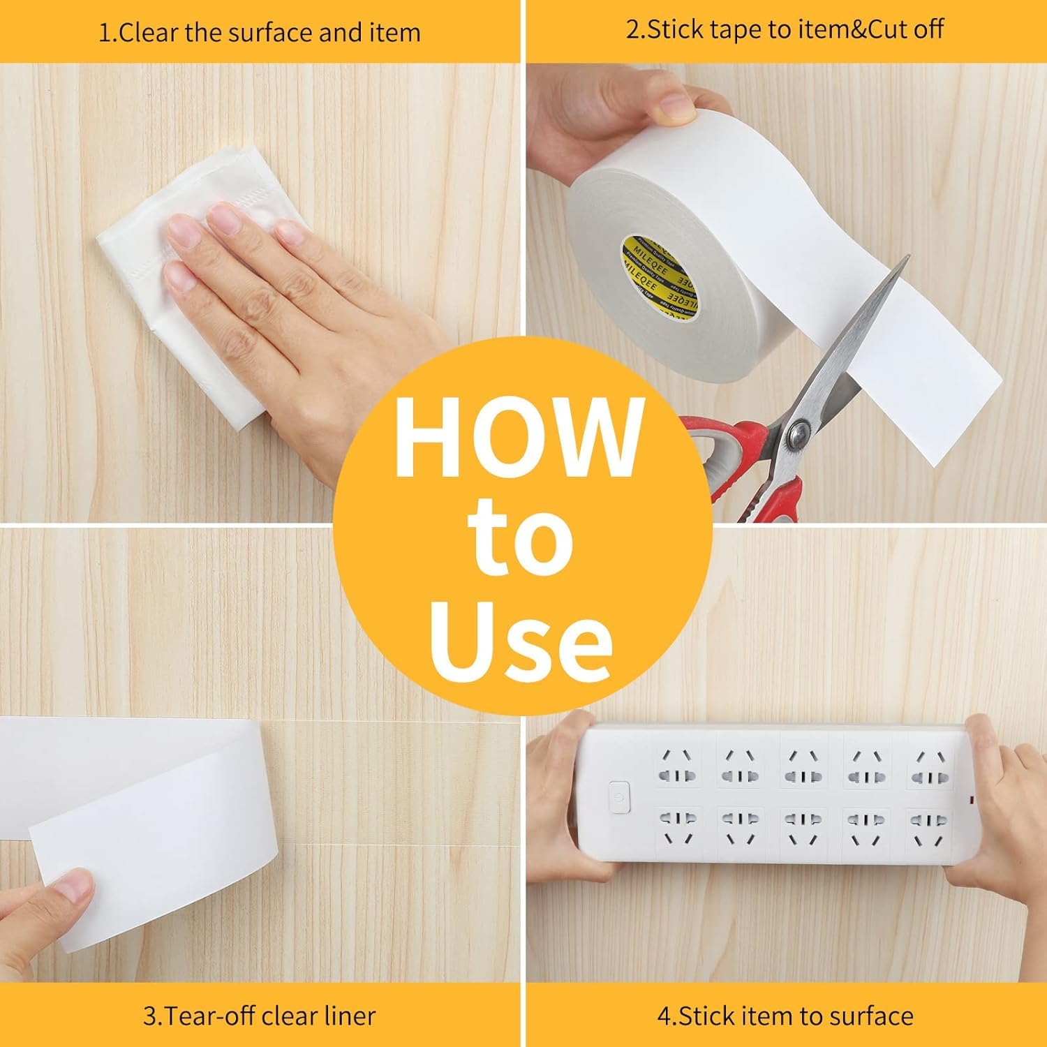 - PROFESSIONAL DOUBLE SIDED TAPE- The double sided mounting tape is made of upgraded PE material and extra strength cloth mesh, coated with extremely sticky clear glue under industrial standard, providing premium grade quality and easy use for home, office, school etc.