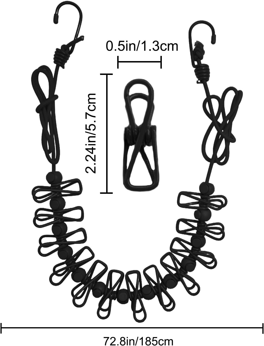 - [Innovative Design] The travel clothesline features 12 clothesline clamps and 13 windproof, non-slip clamps, all designed with a positioning bead. Our sturdy elastic rope supports heavy clothing more effectively than other clotheslines.
