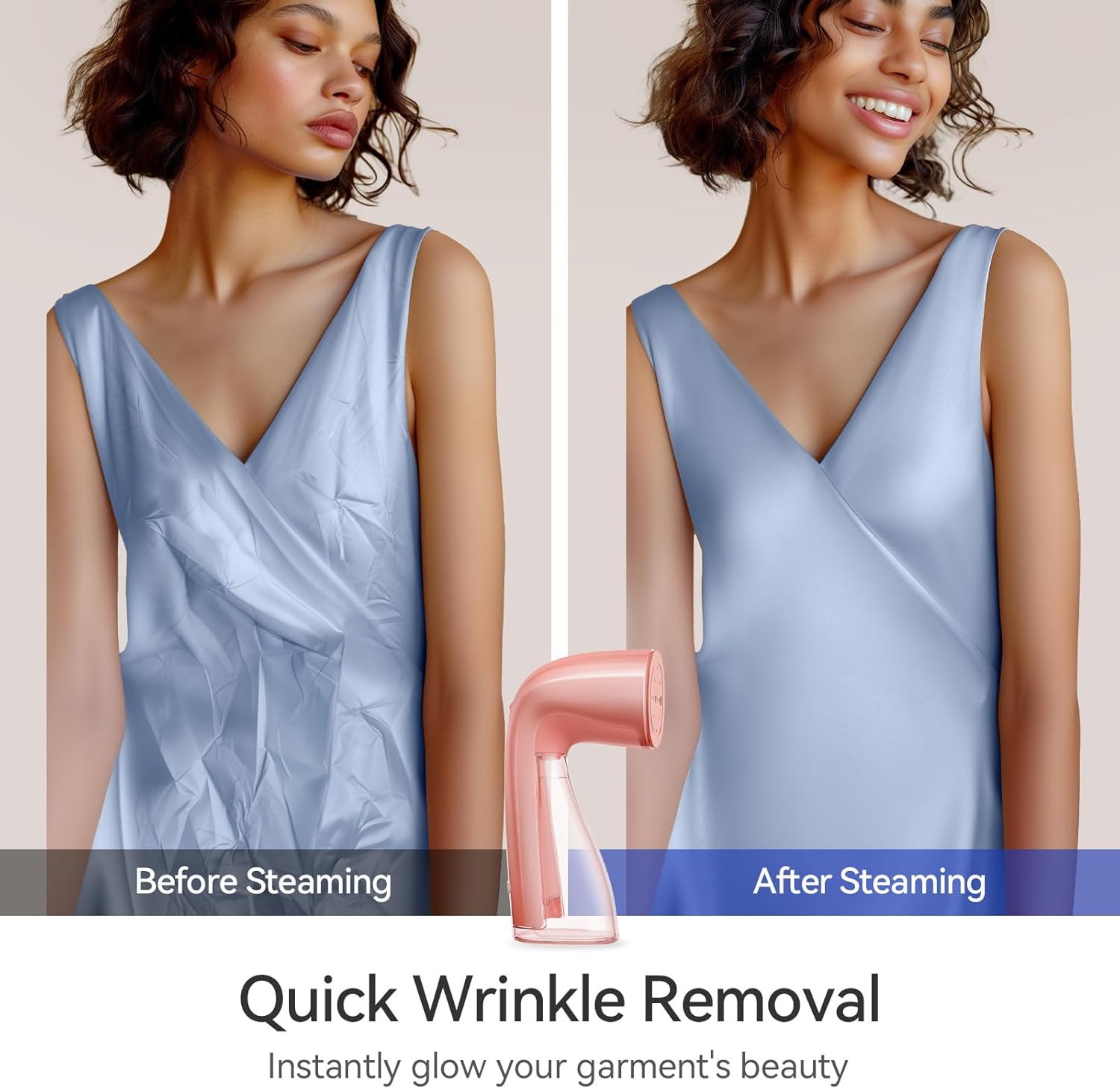 HiLIFE Steamer for Clothes, 1100W Clothes Steamer, Fast Wrinkle Removal with Large 300ml Tank, Ideal for All Fabrics, Easy to Use, Compact and Portable Travel Garment Steamer-Pink