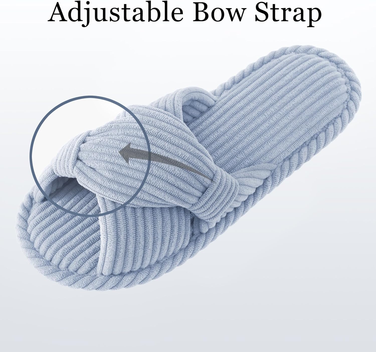 • Breathable Bow Slippers: Crafted from luxurious corduroy fabric, our stylish cross-band slippers are cute and functional, they are tied in in a unique and classic bow design, elegantly wrap around your feet while ensuring optimal ventilation to prevent sweating.