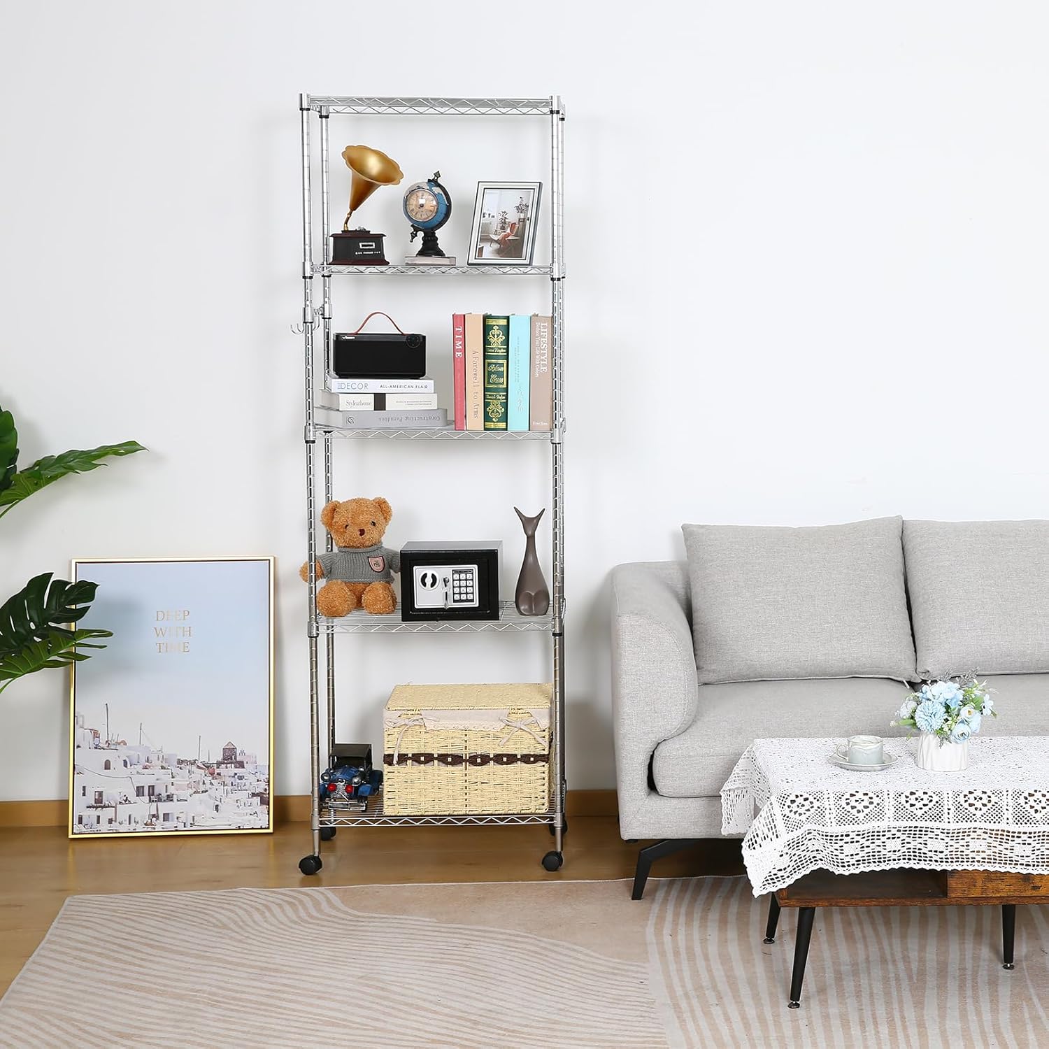 Himimi 5-Tier Storage Shelf Wire Shelving Unit on Wheels Heavy Duty Metal Shelves Adjustable Steel Rack Organization for Kitchen Garage Basement, Silver
