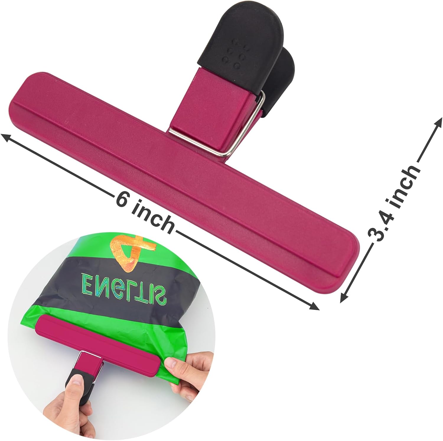 - 【Packing List】You will receive 6pcs large snack clips, size: 6 x 3.5 Inch; there are 6 colors in total: rose red, pink, purple, blue, green, orange, multiple colors are easy to distinguish sealed food