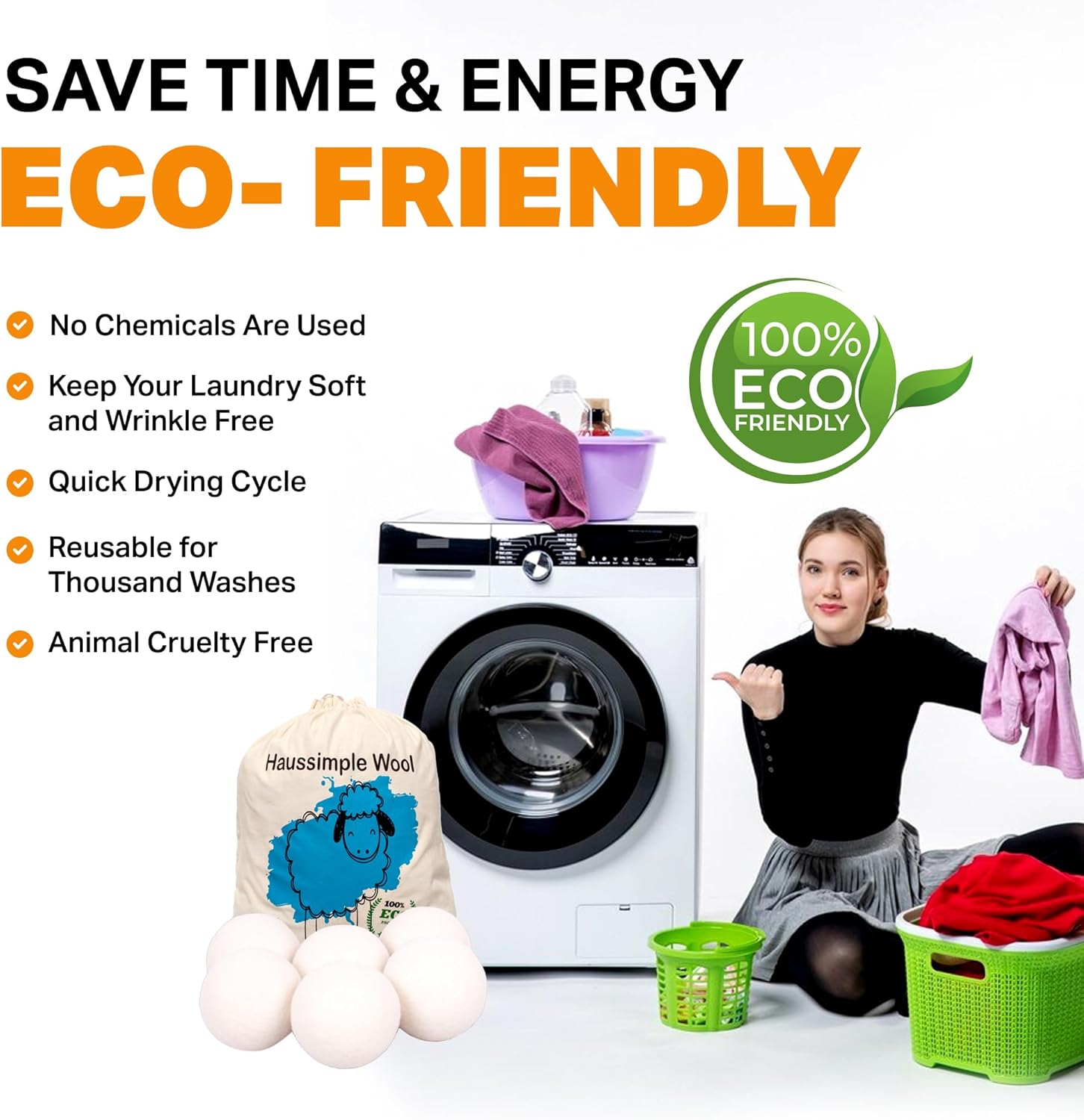 - Eco-Friendly and Reusable: Wool dryer balls are reusable, lasting for hundreds of loads. Unlike single-use dryer sheets, they generate less waste and are a more sustainable choice.