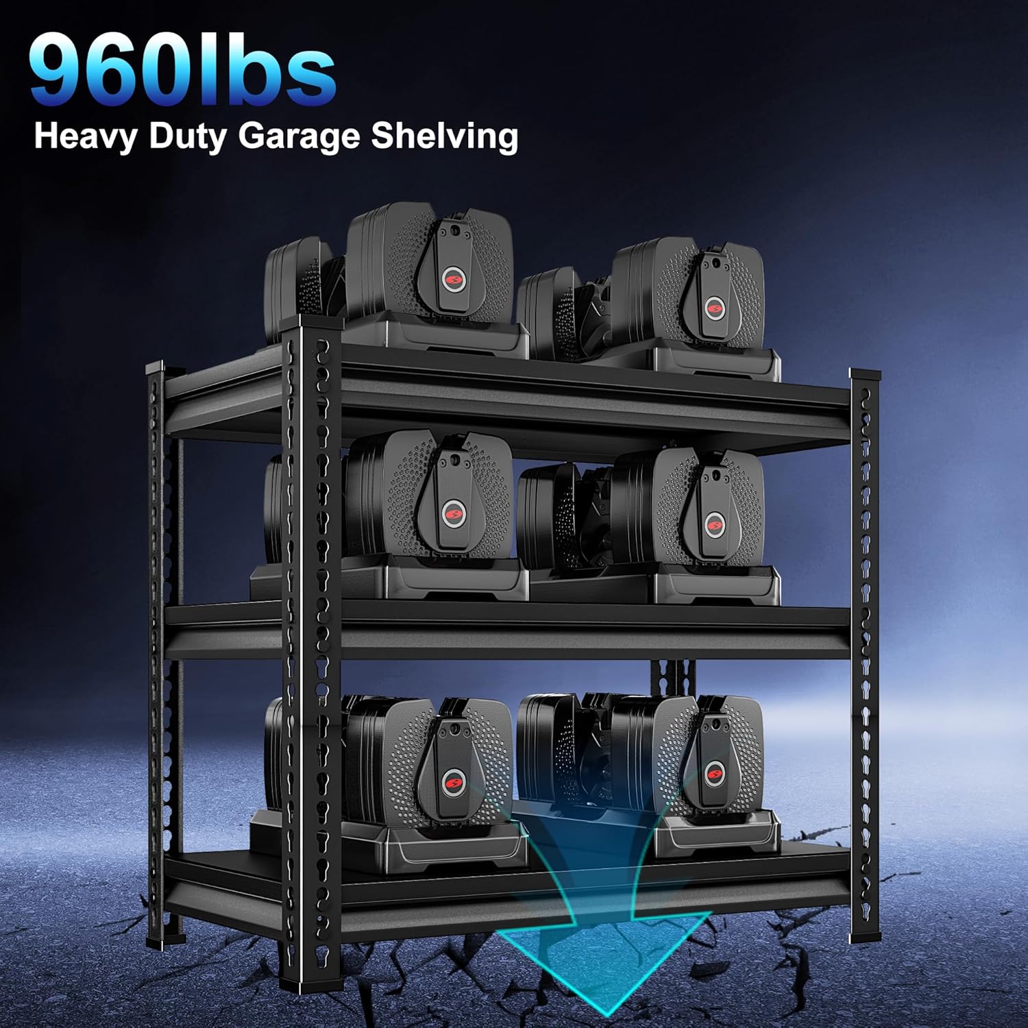 Adjustable Garage Storage Shelves, 35.4''W Garage Shelving Heavy Duty Loads 960LBS, Metal Industrial Utility Shelf for Warehouse, Kitchen, Laundry Room,35.4" W x 15.7" D x 33" H,Black