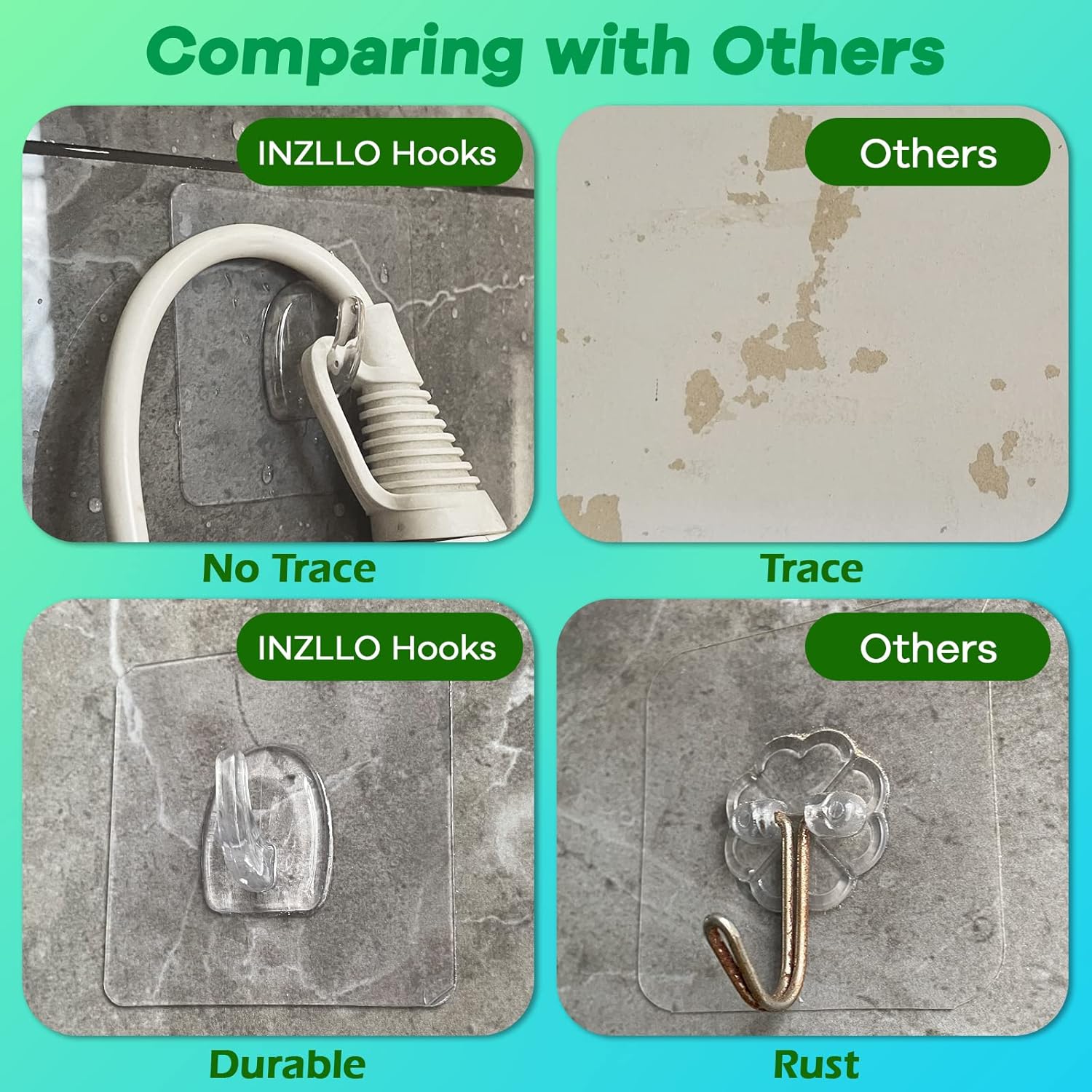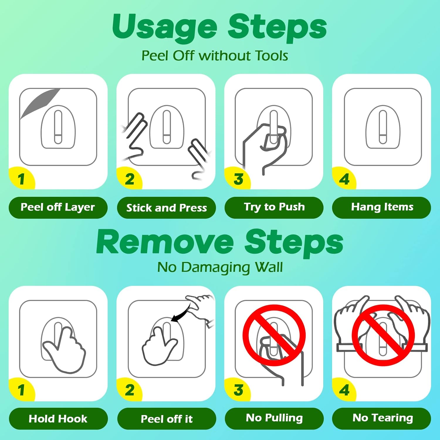 - 【Easy to Install & Remove】 Our Sticky Hook is very easy to istall. Just clean and dry the surface, stick the hook onto the wall surface, and then squeeze all the air bubble out. Easy to clean and re-position without surface damage. When removing the hooks, no any traces or damage to the wall. Reuse many times until the hooks lose its adhesive.(please use hair dryer, do not wipe with paper or towels)