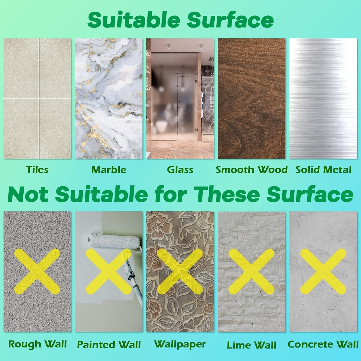 - 【Suitable for Various Surfaces】 The Utility Hooks can work on most flat and stable surfaces, but not suit for painted wall; Widely used on a variety of surfaces, like Wood, Tile, Glass, Cabinet, Ceramic, Stainless Steel, Metal, Plastic surface and more (please pay attention that there are limits on painted walls, it will destroy the integrity of the wall)