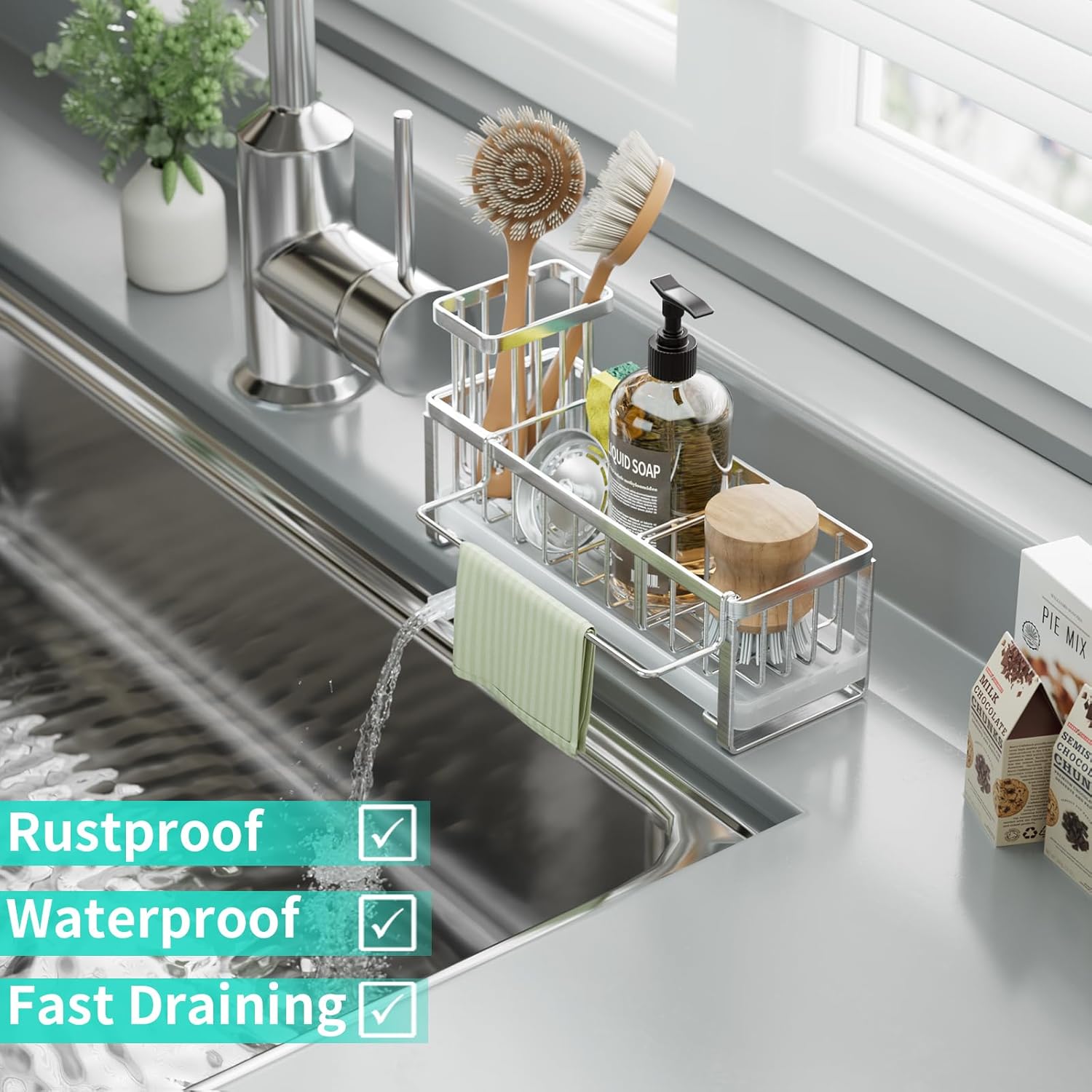 - [Removable Dishcloth Holder]: Struggling with wet cloths? Our sink sponge holder removable cloth holder provides a dedicated spot for your towel, keeping it dry and accessible. Maintain a neat kitchen where everything is in its place and ready for use