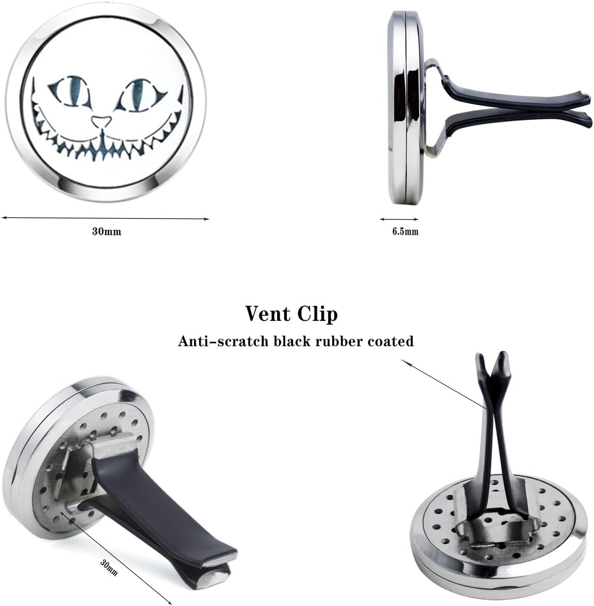 - 【Material 】High quality 316L stainless steel 30mm car diffuser vent clip, solid and smooth, anti-corrosion, easy to clean, we pair our diffuser car vent with reusable 10 color refill pads. Complete with a solid back and two magnets for a secure close, you’ll never have to worry about getting essential Oil all over your car.