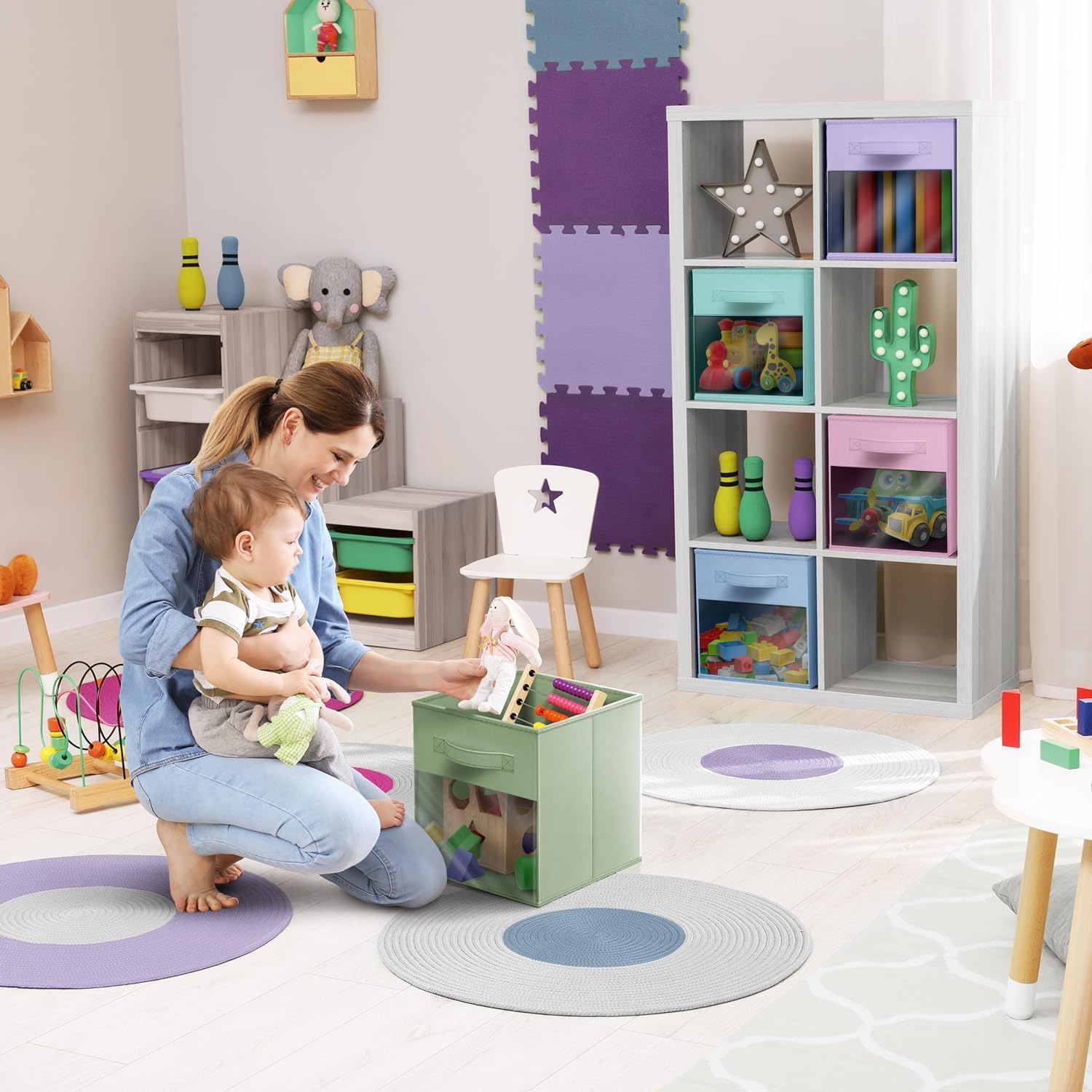 - Versatile Use: Use the Sorbus Fabric Storage Cubes in the nursery, playroom, kid’s room, family room, laundry area, closet, storage room, etc. Sit cubes on the floor, in the closet, bookcase, shelving area, cubbies, dorm room, and more.