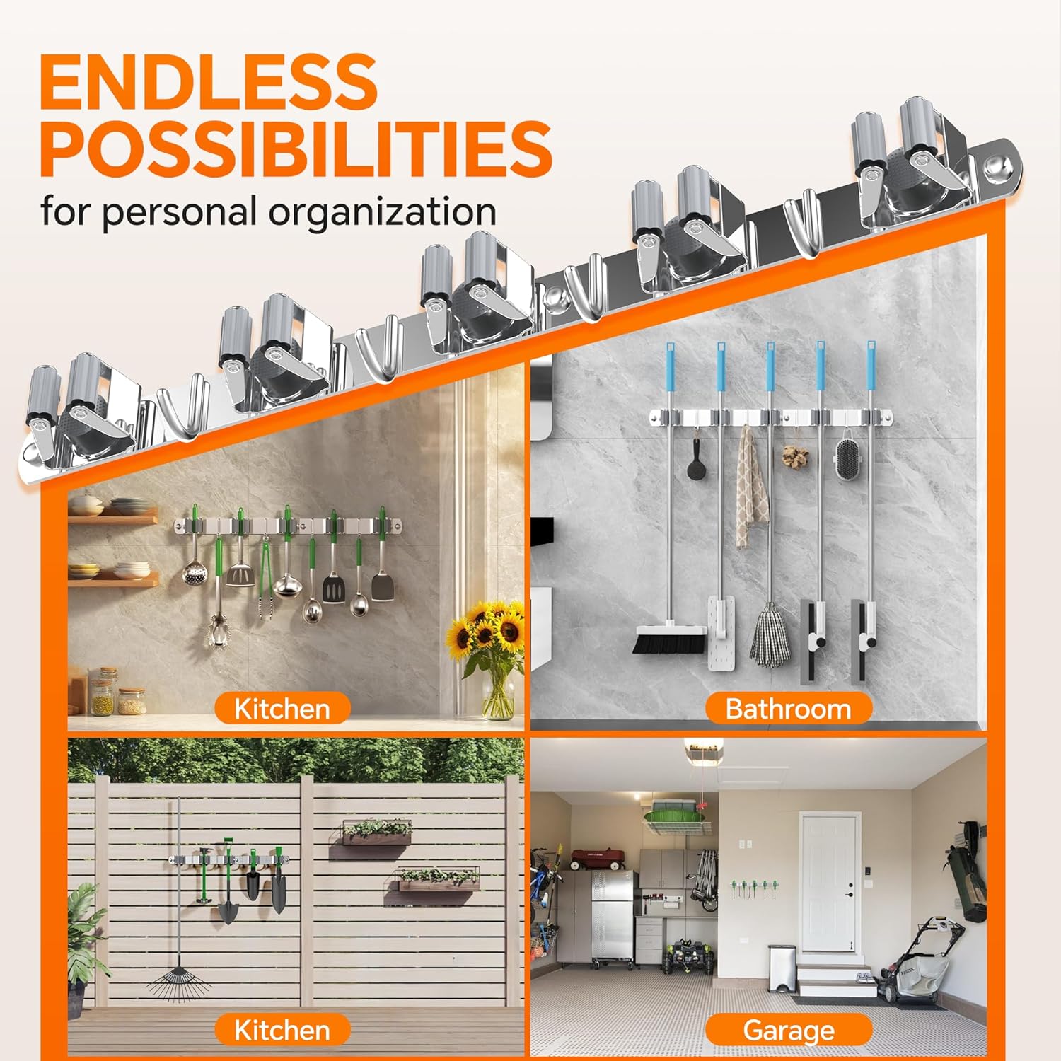 - Versatile Garage Storage Solution - This broom mop holder wall mounted isn't just for cleaning tools; it's perfect for organizing garden tools, utility hooks, and other household items in garages, closets, laundry rooms, or any space needing efficient organization