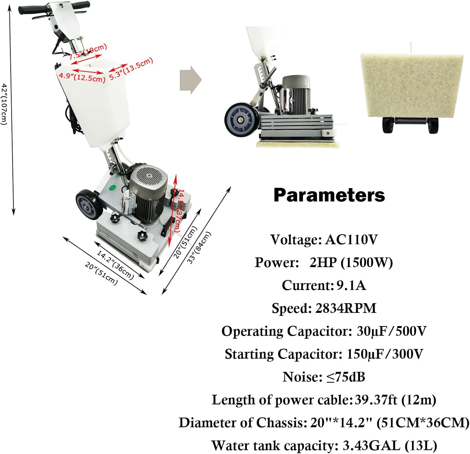 - 20"x14.2" Brush - Equipped with a 20"*14.2" brush disc that ensures smooth reciprocating linear motion, effectively preventing scratches, swirls, scuffs, and other damage to your floors, ensuring a flawless finish.