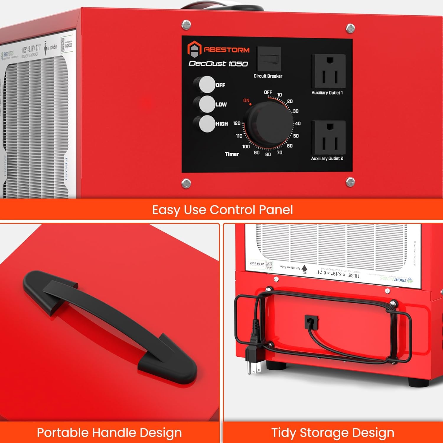 - Sleek Design & Easy Portability: The metal housing offers a sleek look, and the sturdy handle makes this air filtration system highly portable. With a side cord wrap design makes it easy to store the power cord (11.5 ft)