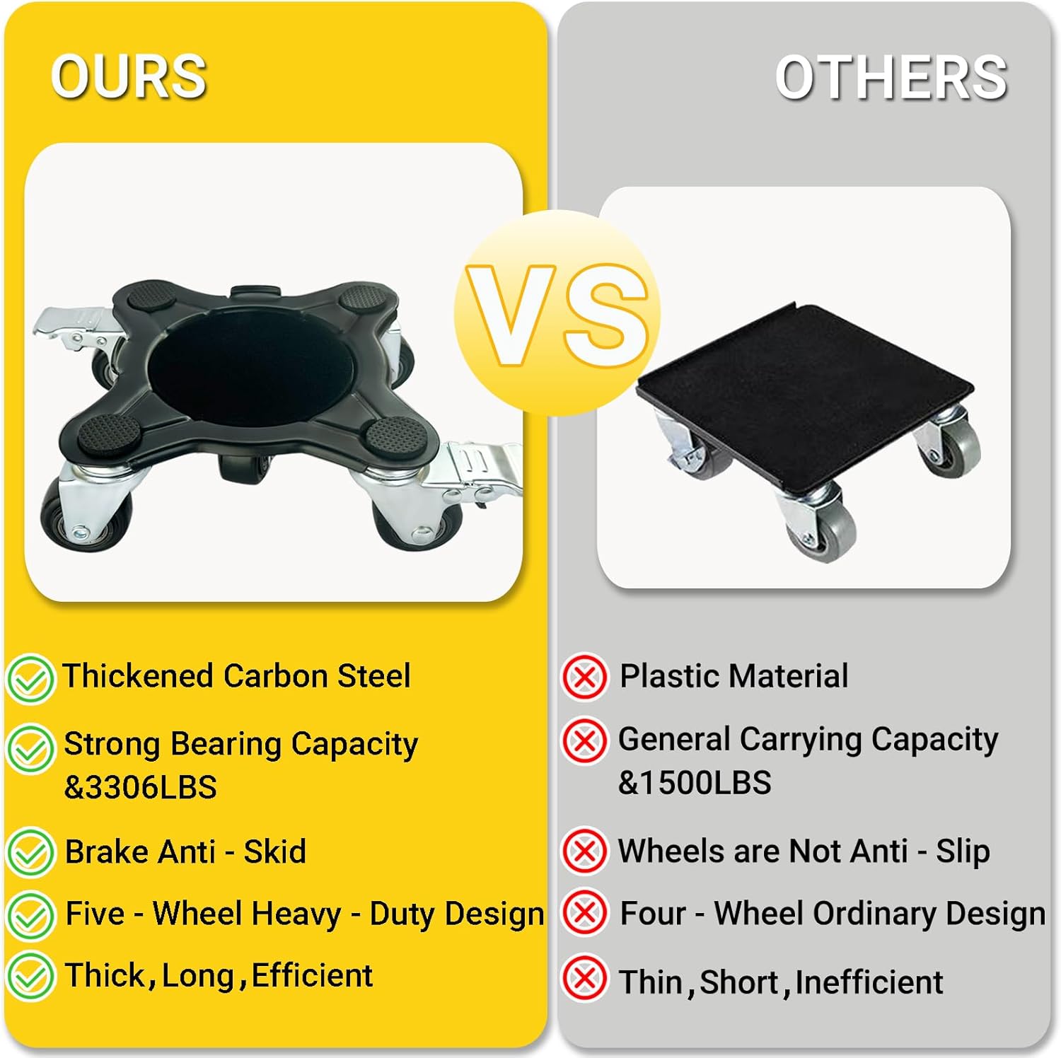- 【Thick Carbon Steel Material & 3306lbs Load Capacity】Furniture Dolly Movers is made of thickened carbon steel with a powder-coated surface that works strongly against corrosion and deformation. No worry about cargo shifting or shaking during transportation; our thickened velvet anti-skid pads will provide stable and secure transport anytime while protecting your furniture. The reinforced steel platform can effortlessly carry a weight of up to 3306 lbs. No need to worry about bending or damage