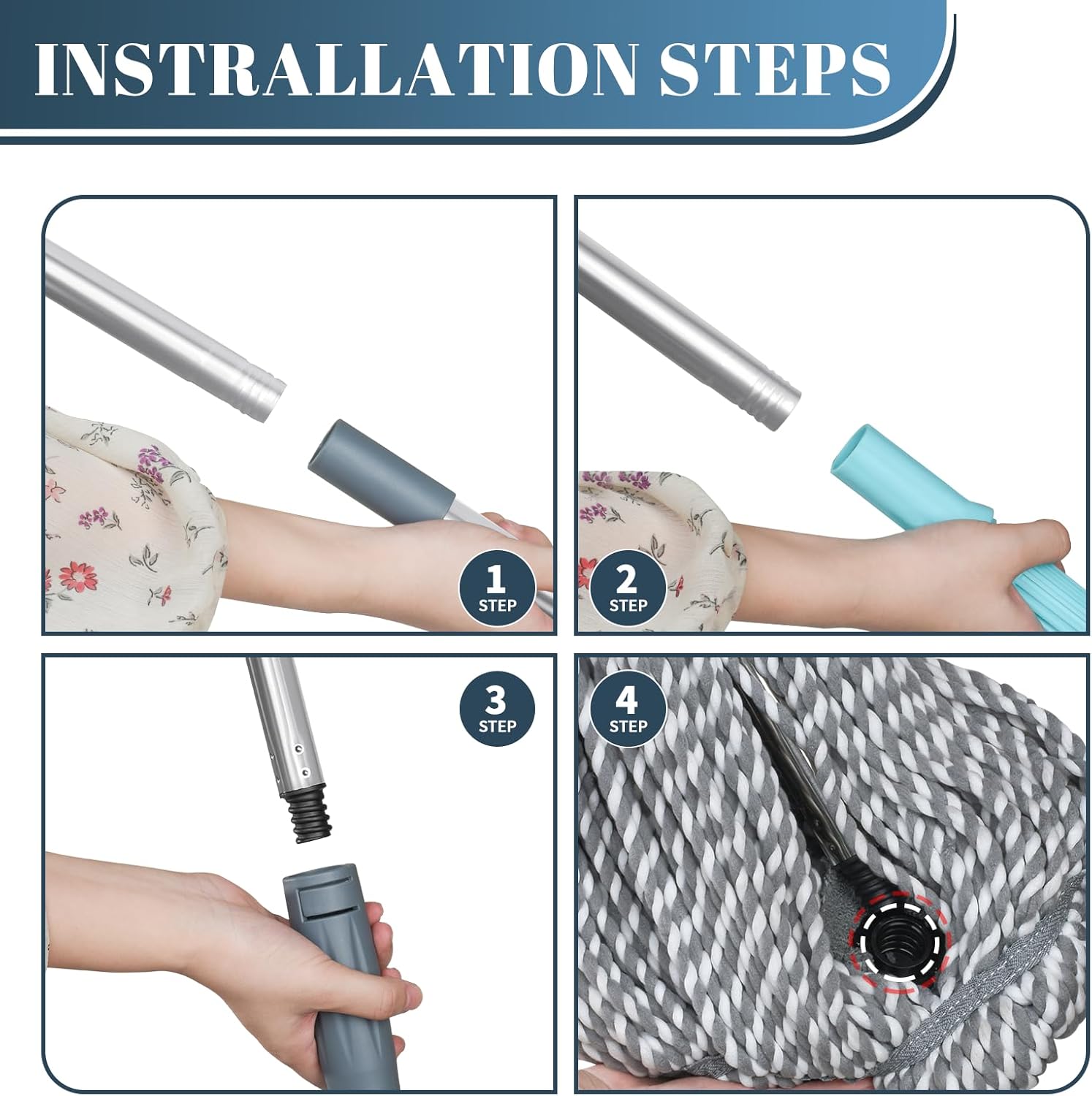 - Longer Handle Twist Mop: Mops for floor cleaning heavy duty is 64" long, longer than regular mops, no need to bend over. Soft and comfortable foam handle, more comfortable to hold. loop on end of handle makes it easy to hang