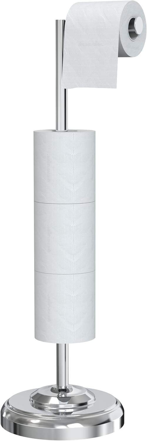 Freestanding Toilet Paper Holder Stand with Storage – Holds 4 Extra Rolls – Chrome Toilet Paper Holder for Bathroom – Sturdy Base, Classic Retro Style, Space-Saving Bathroom Storage Organizer