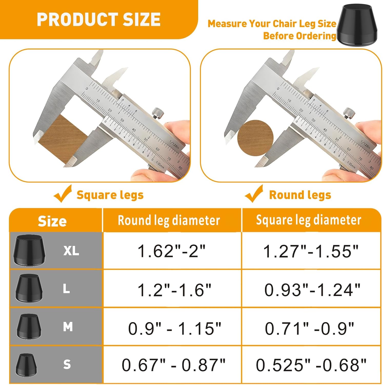 - 【UNIVERSAL SHAPE AND SIZE】:Furniture Sliders has High elasticity, free to pull.No deformation and no discolorratio.Chair Leg Sliders are good for round furniture legs 0.67" - 0.87"(17-22mm) and square legs 0.525" -0.68"(13.35-17.27mm).with perimeter of 2.1 - 2.72" (53.38-69.08mm).