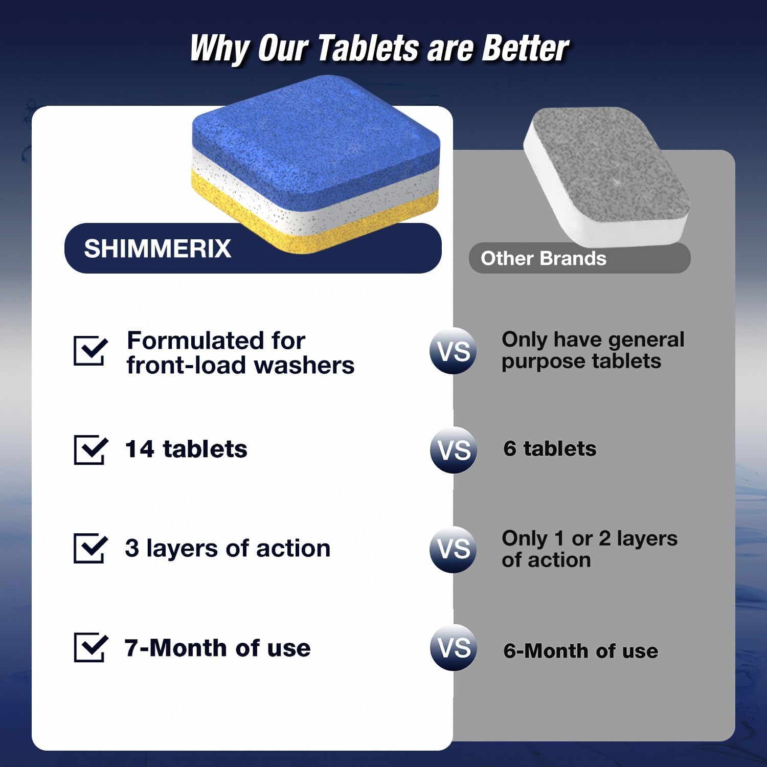 - Easy, Mess-Free Use: No measuring, no pouring, and no mess; Simply place one tablet directly into your washer drum, and let our powerful formula do the hard work; Enjoy a hassle-free cleaning experience with just one tablet per cycle, making washer maintenance easier than ever