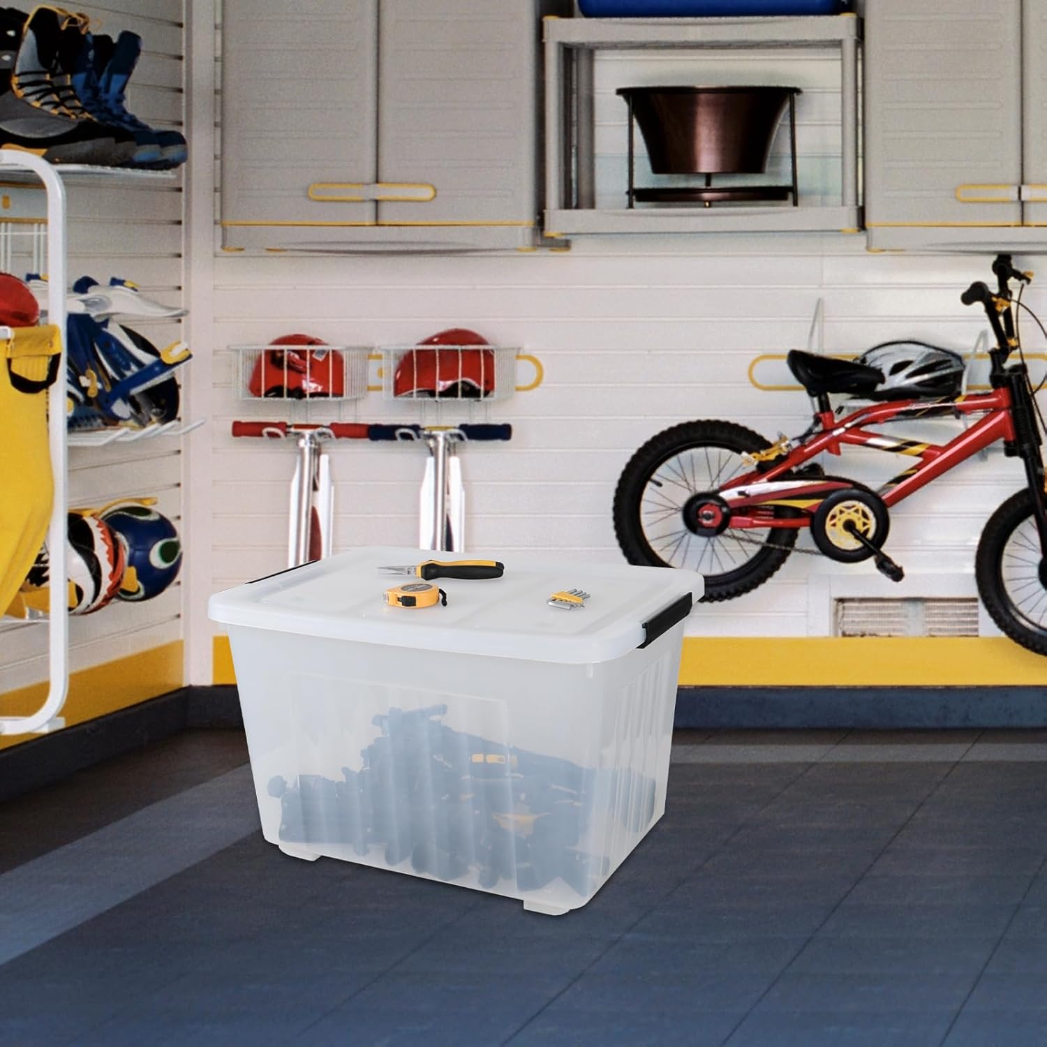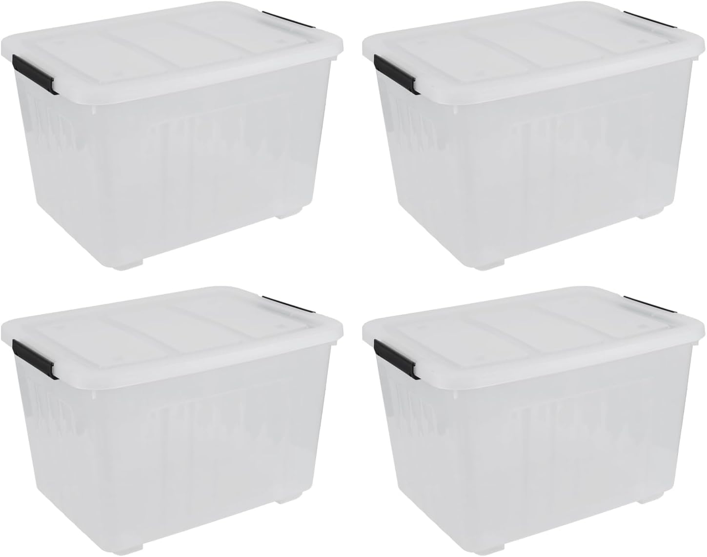 70 Quart Clear Plastic Large Storage Box with Wheels, 4-Pack Plastic Storage Bins with Lids