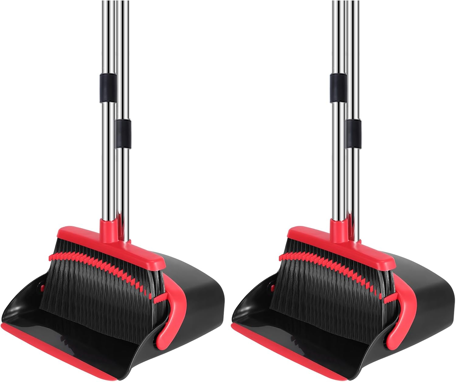 NACENA Broom and Dustpan Set, 52-in Long Adjustable Handle Broom Dustpan Combo with Dustpan Teeth to Automatically Clean Hair Suitable for Home Kitchen Office Hall Floor (Black&Red), 2 Pack