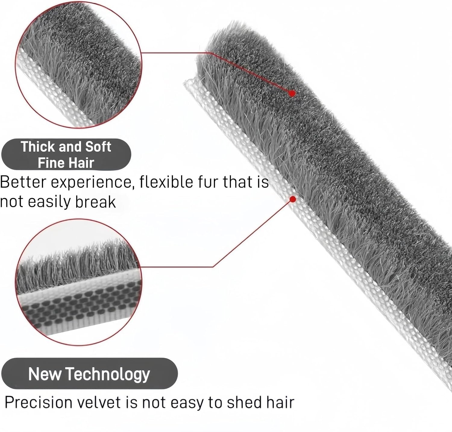 - 【High Density Brush Seal Strip】Self sdhesive door weather stripping door seal strip made of durable woven material. High density Fine hair, not easily fall off and lose hair, soft bending without deformation. And this window seal strip can be trimmed to any size according to your needs.