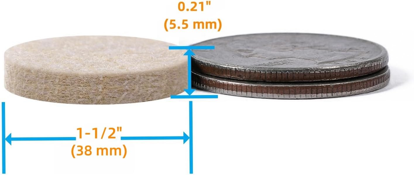 - High Quality Felts: Furniture pad's surface is superfine fiber wear-resisting and slippery. Laminated fiber can anti-deformation, scratches and noise. 1/5inch thick felt pads with strong adhesive backing to ensure the chair leg pads stay in place