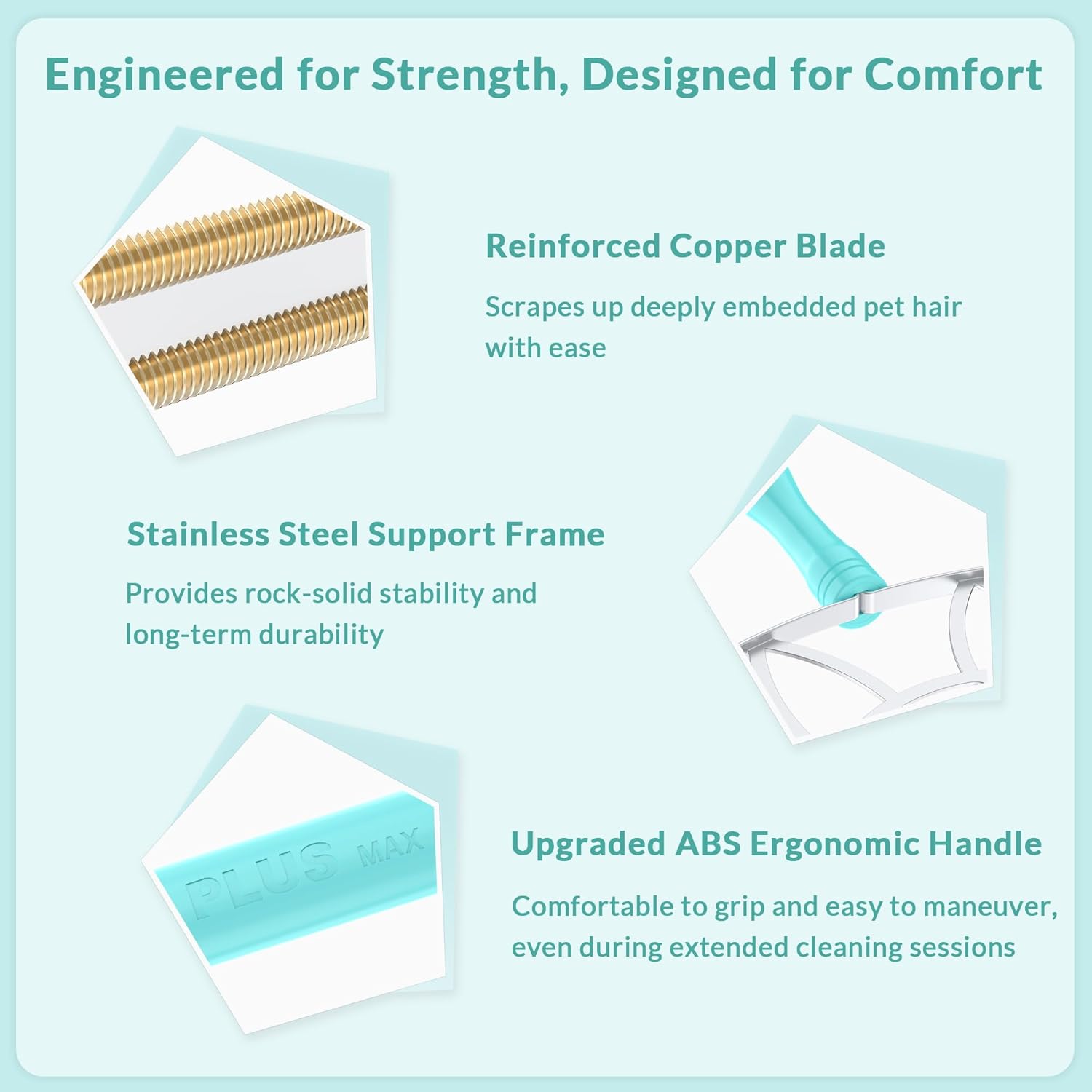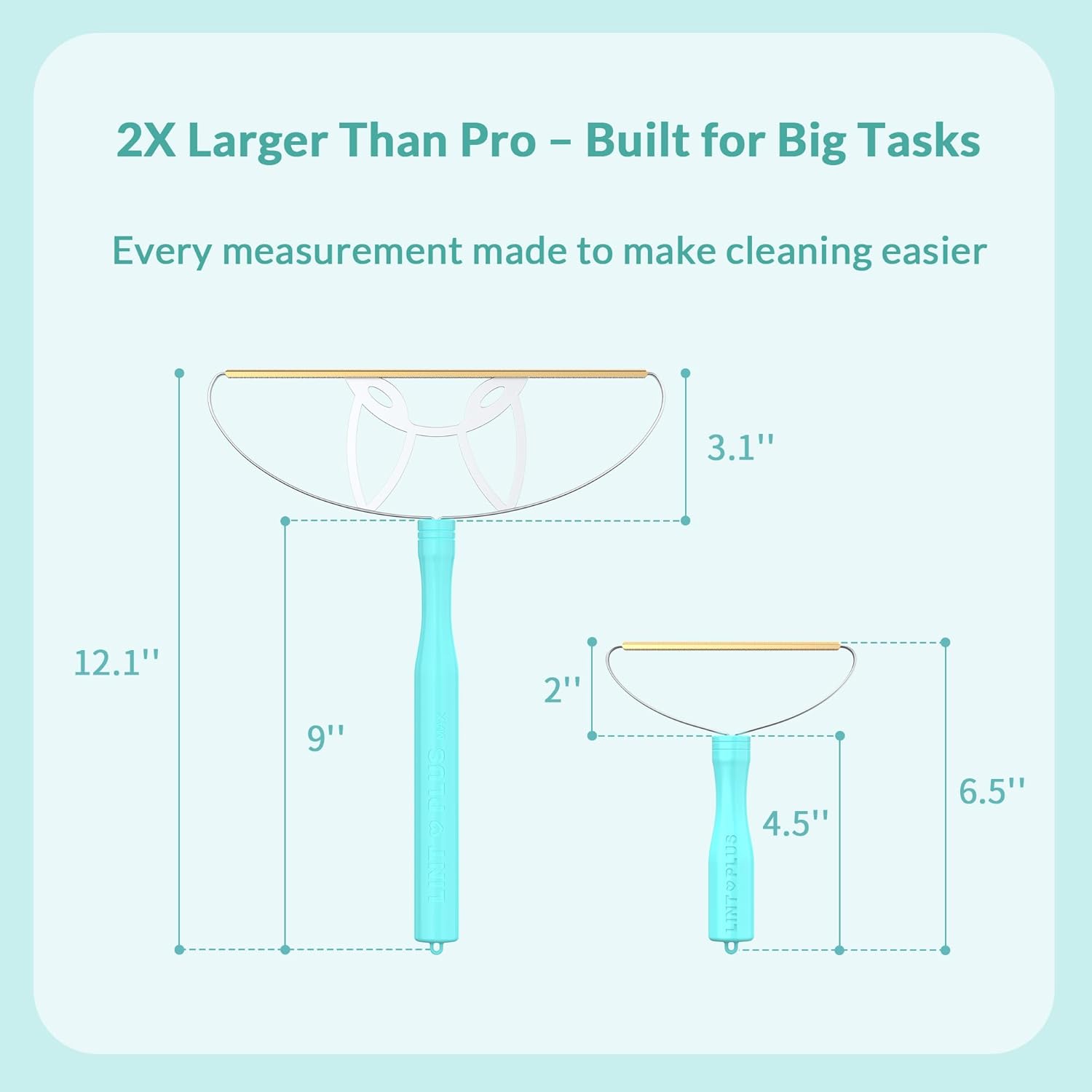 - 2X LARGER TOOL FOR QUICK CLEAN-UPS——The oversized scraper is perfect for tackling large areas like carpets, pet beds, and stair risers, removing stubbornly trapped pet hair with unmatched efficiency. Save time while keeping your space spotless!