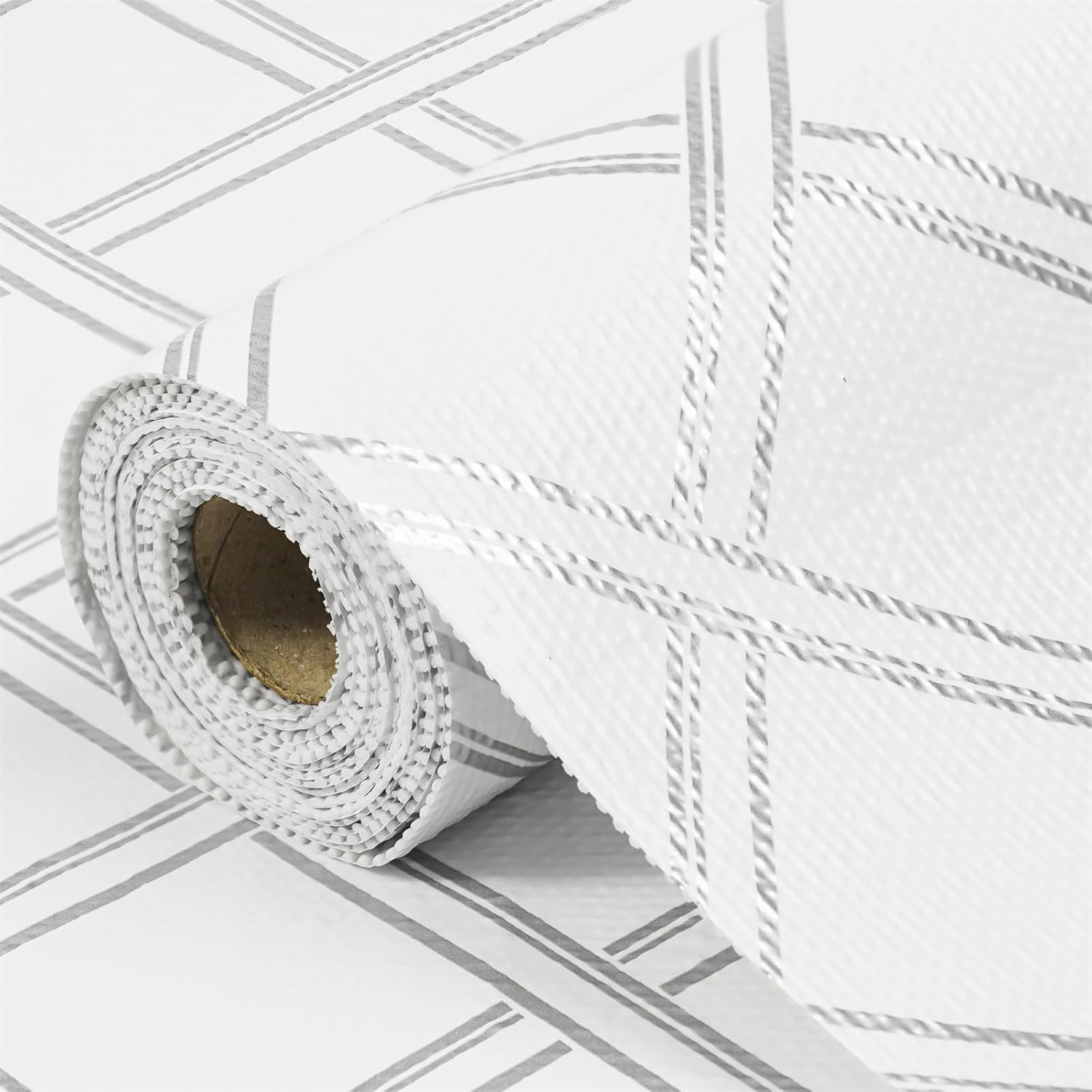 Drawer and Shelf Liner for Kitchen Cabinets Non-Adhesive, Non-Slip Cabinet Liner Shelf Paper Strong Grip Waterproof Easy to Clean for Kitchen Shelves Cupboard,Silver Geometric,12IN X 30FT