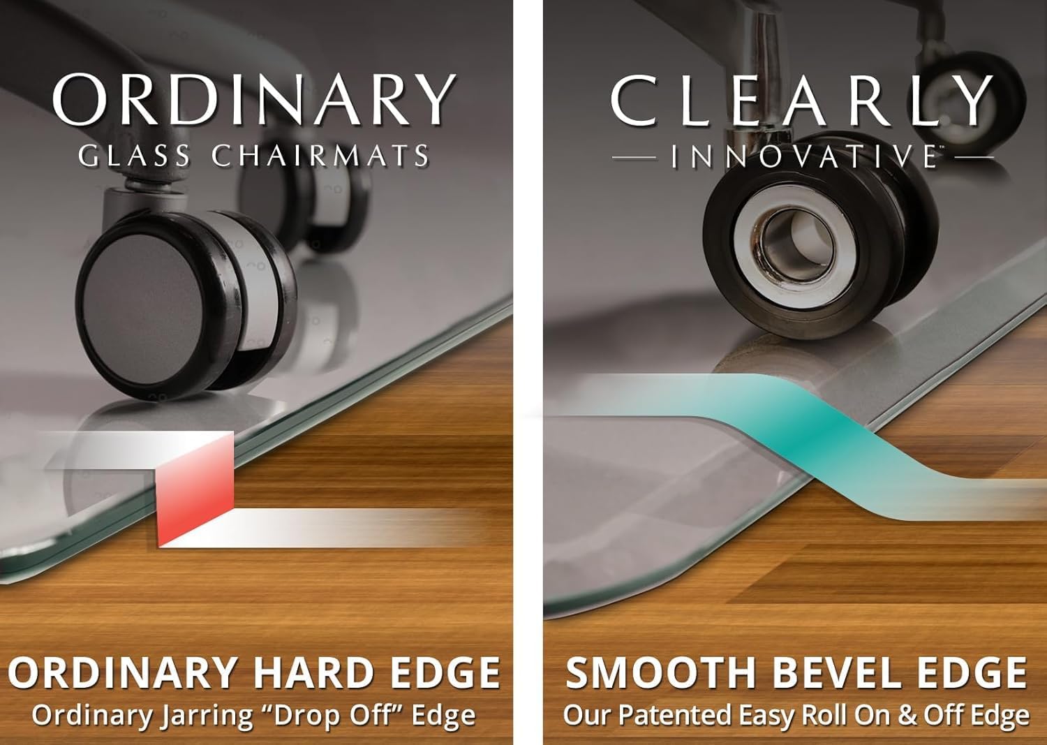 - ๐ฃ๐ฅ๐๐ ๐๐จ๐ ๐๐๐๐๐ฅ ๐ ๐๐ง - Clearly Innovative set out to create the best ยผโ thick tempered glass chair mats on the market and have done so with their exclusive patented beveled-edge design that provides a smooth transition from our premium glass mat to carpet or hard floors and is matched by no other manufacturer.