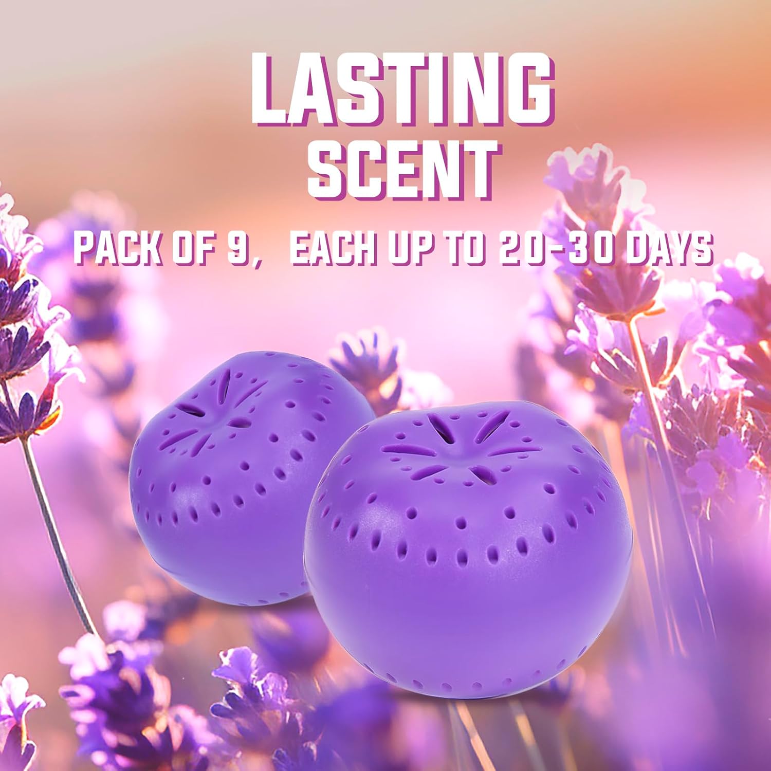 9 Pack Baking Soda Deodorizers, Lavender Scent Shoe Deodorizer Balls, Air Freshener for Home, Odor Eliminator for Closets Bathroom Pets, Up to 80 Days