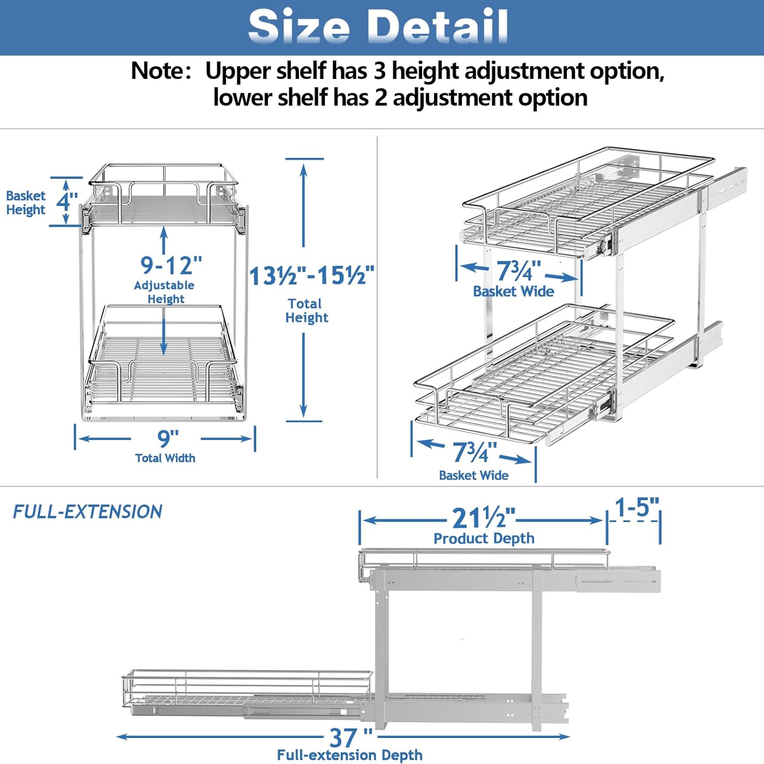 - 【Efficient Kitchen Organizer】Features a full-extension ball-bearing system which slides smoothly; Durable and strong organizer that can hold up to 100-pounds of weight.