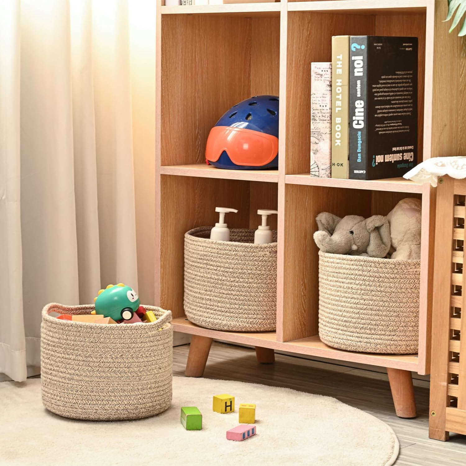 - Crafted from High-Quality Cotton Rope: These storage baskets for shelves offer durability and style. These design is both functional and aesthetically pleasing, perfect for using as burr basket ideas or organizing basket