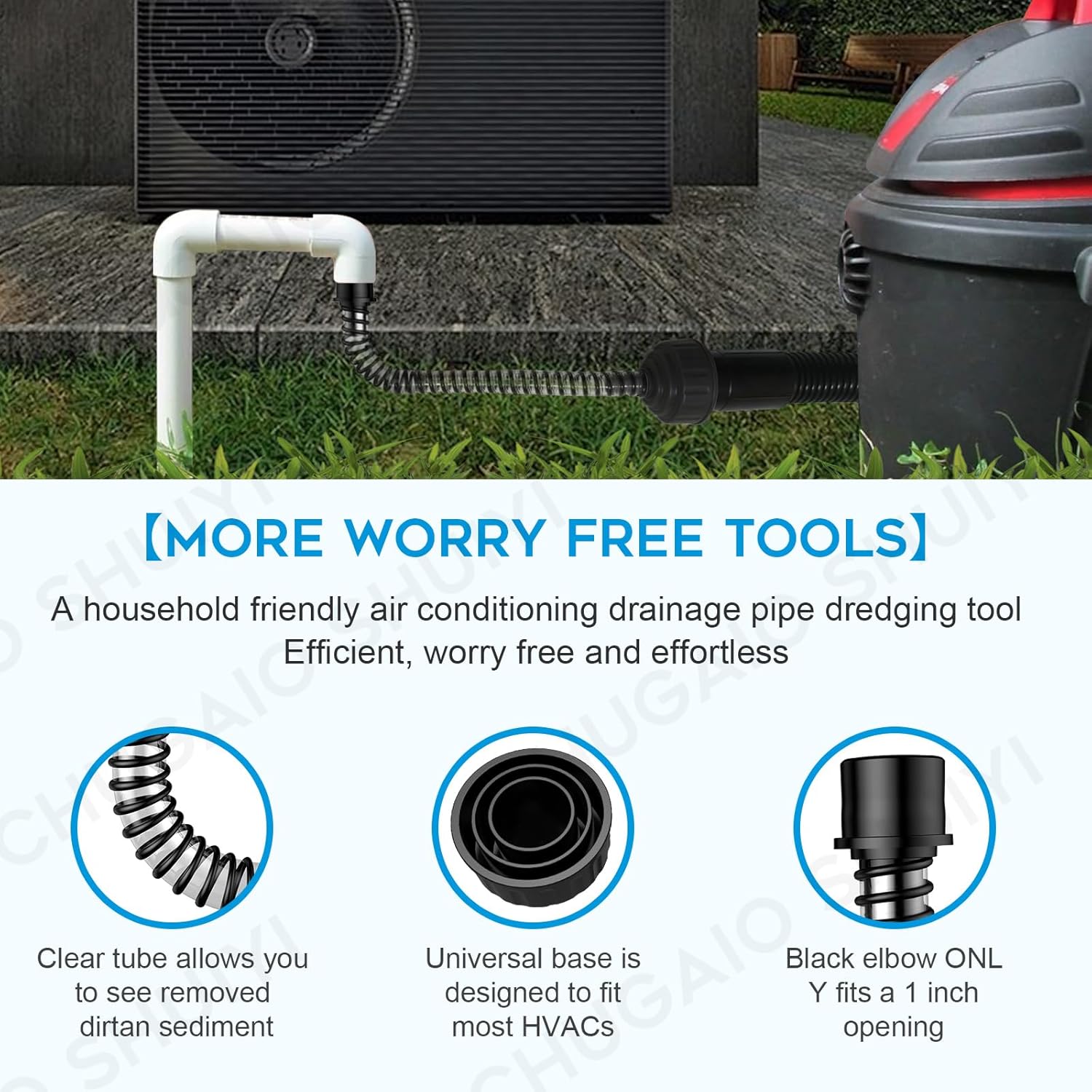 - 【Save you hundreds of dollars in value】:If you often need to clean air conditioning pipelines by hand but find it painful, inefficient, and costly, then this product is perfect for you. With the wet vacuum cleaner accessory, you can clean the air conditioning condensation drainage pipeline by yourself. It can help you save hundreds of dollars every year, and you no longer have to call for service, you can completely solve problems on your own.