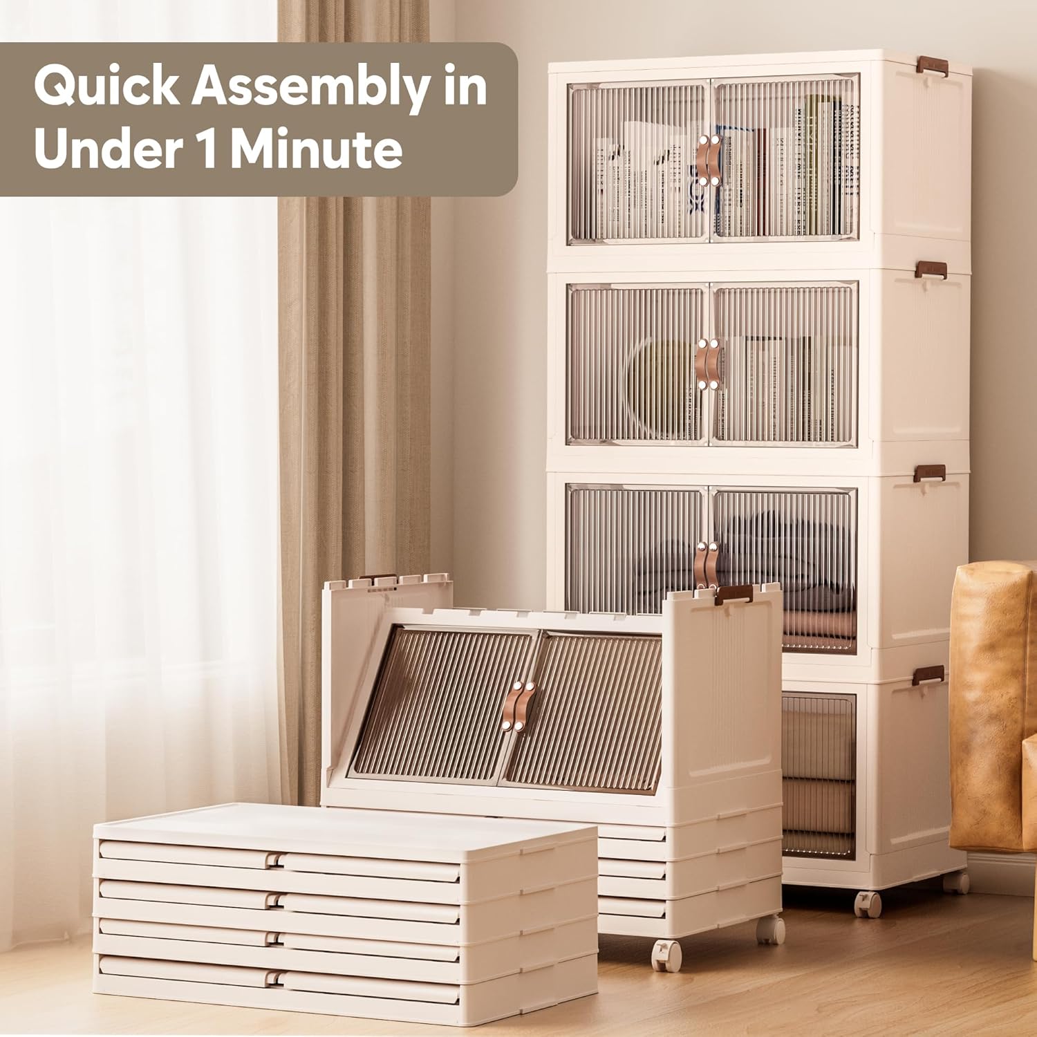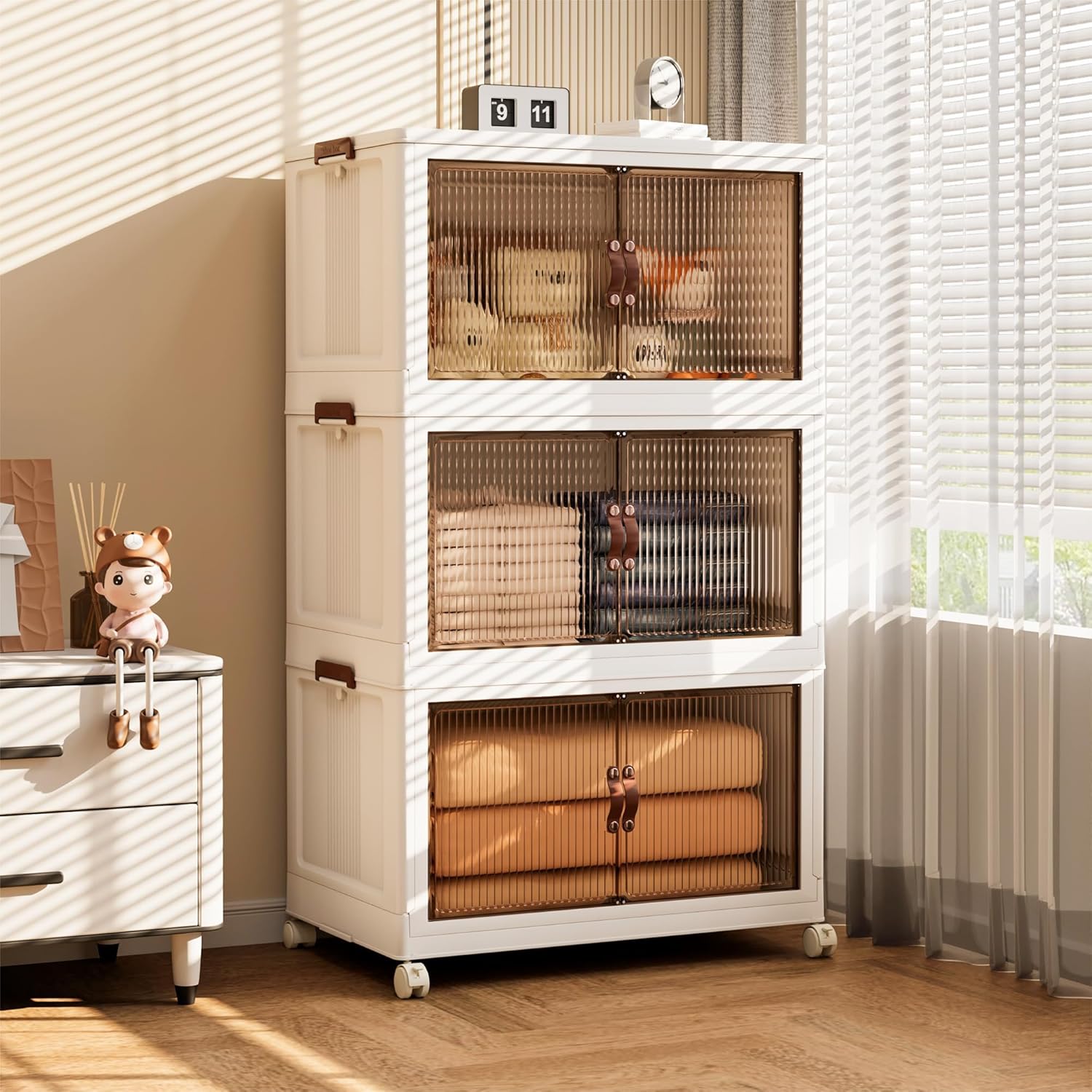 - 【Magnetic Doors & Rotating Wheels】The bins offer two opening options: front or top. The magnetic closure allows easy access. The 4 wheels make them easy to move, ideal for use in storage containers and closet organization in any room like your closet or bathroom.