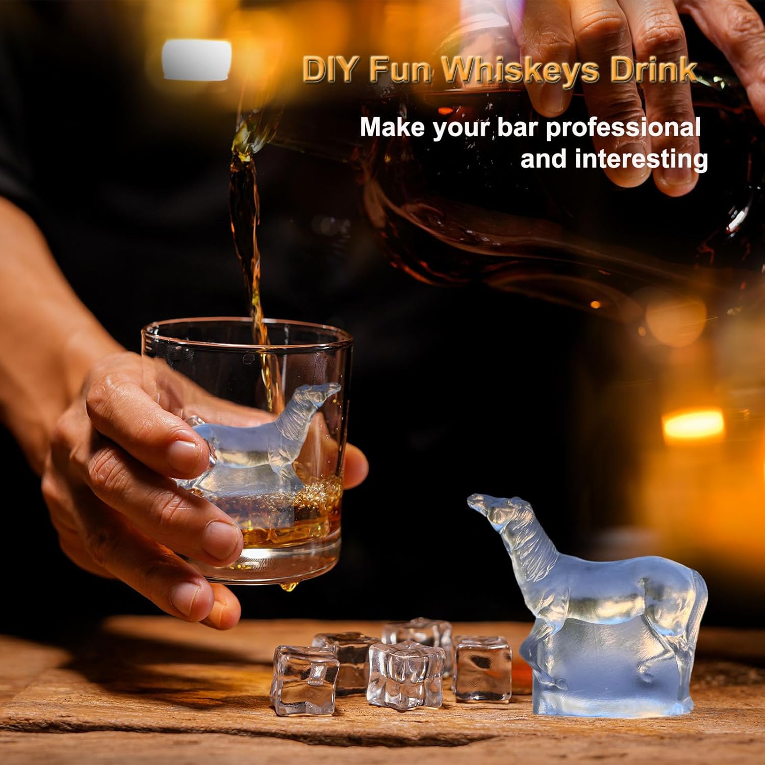 - Fun Horse Shaped Ice Cube Mold -- Horse Ice Cube Mold can make unique Horse shaped ice cubes; it has a large size and is designed for whiskey glasses, which is very suitable for drinks that need to melt slowly, such as whiskey, cocktails, bourbon, rum, tequila, gin, etc.