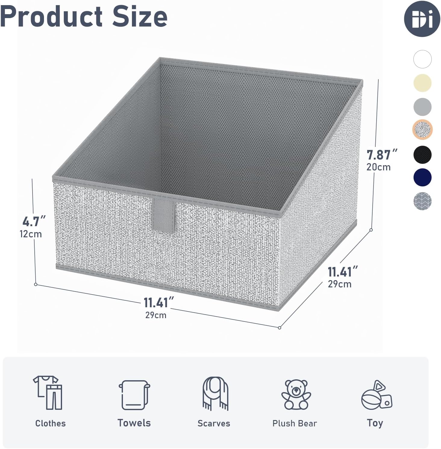 - 【Trapezoidal Design】These storage cubes are Trapezoid design that makes finding things convenient, also allows easy access when putting on the highest shelf. These are ideal closet bins for clothes, bags, shoes, towels, blankets, toys, dolls, and more