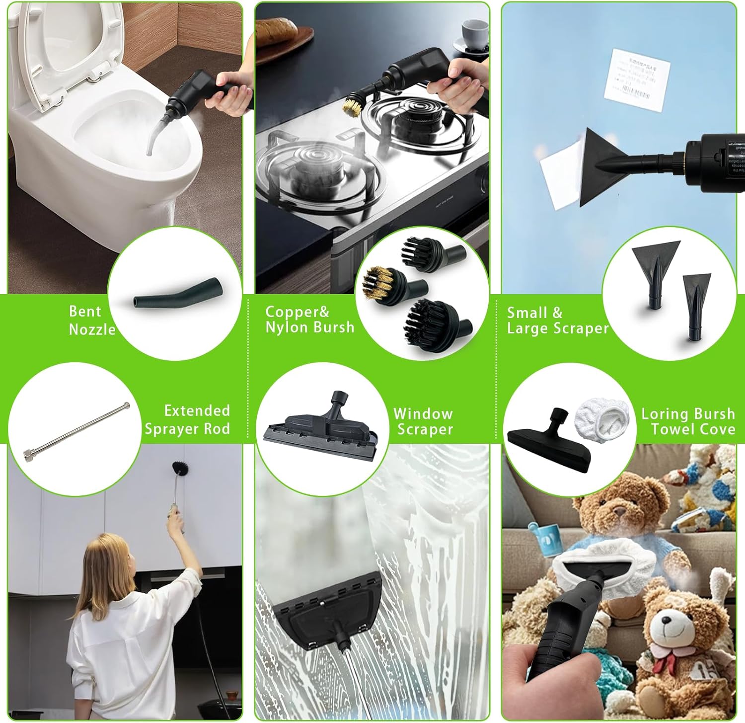 2500W Handheld Steam Cleaner,Portable Car Steamer For Auto Detailing,High-Temperature and Pressure Steam Cleaner For Home, Steam Cleaning Machine for Furniture,Kitchen,Grout,Floor,Tile (09-Green)