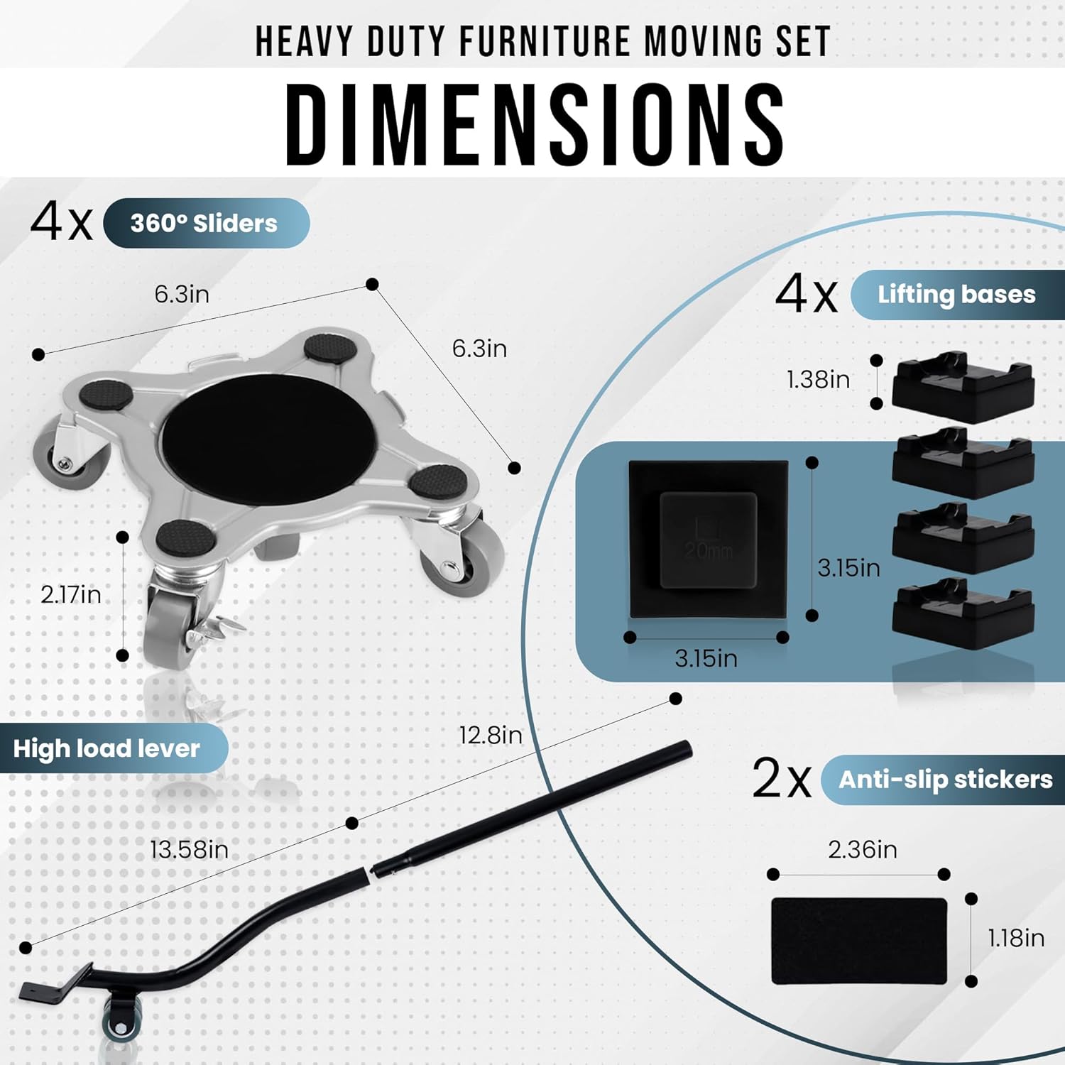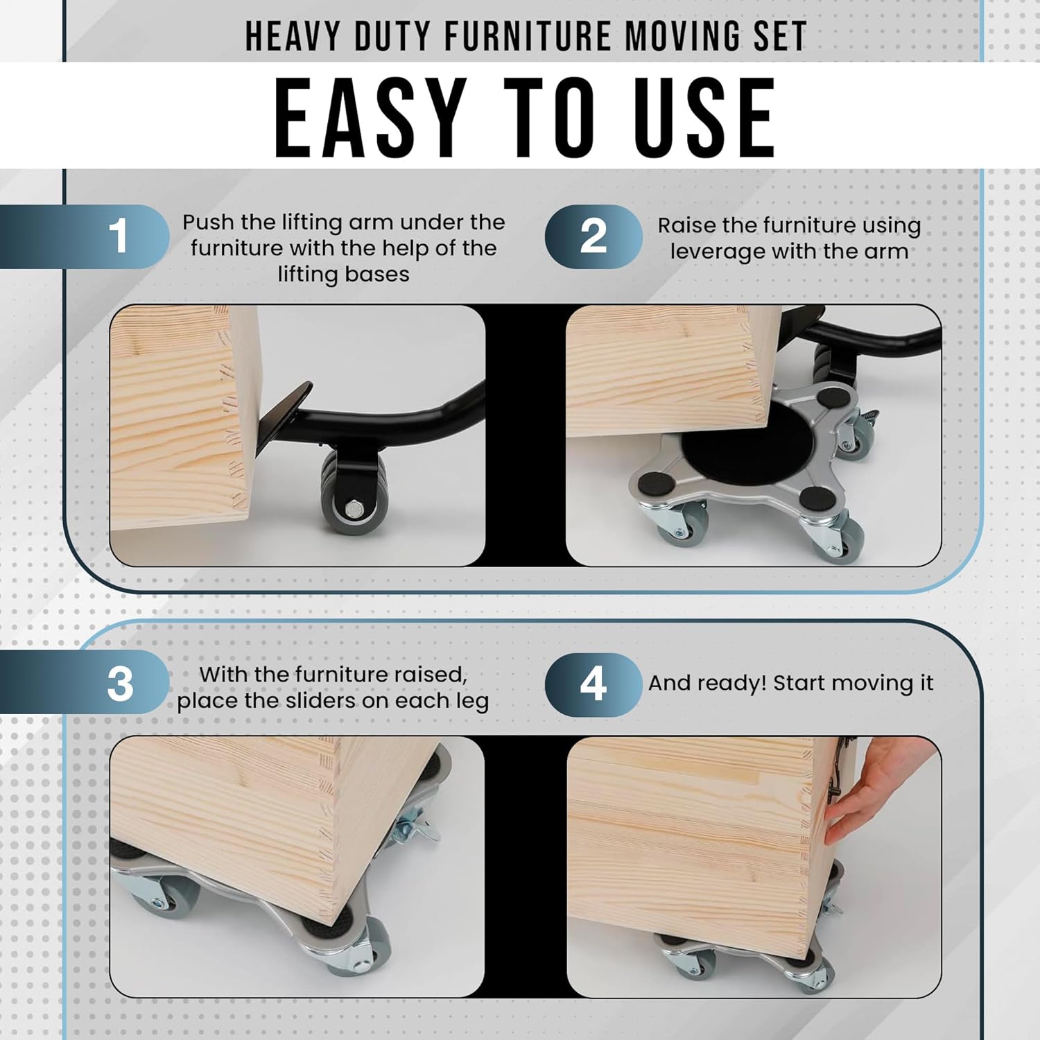 - 📦 COMPLETE MOVING KIT: Includes 4 sliders with non-slip bases and a furniture lifter tool for safe, efficient moving. A reliable all-in-one solution for any home or office move.