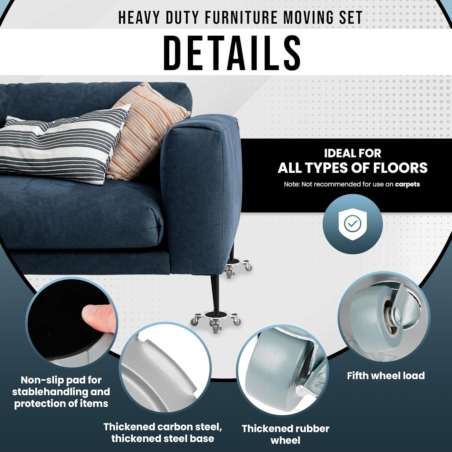 - 🛠 DURABLE CONSTRUCTION: Made from high-strength steel, this set of furniture movers is built to withstand repeated use, ideal for both residential and professional purposes.