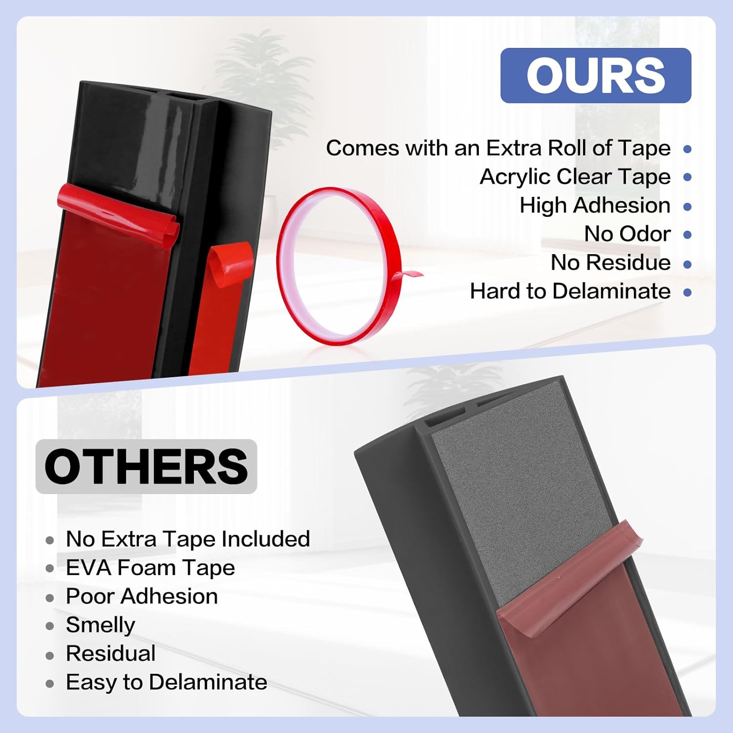 - Self-Adhesive Design: The door to tile transition strip reducer features an upgraded design with dual self-adhesive strips, providing a stronger, more secure hold. Installation is quick and simple—just peel and stick without the need for drilling, preserving your floors