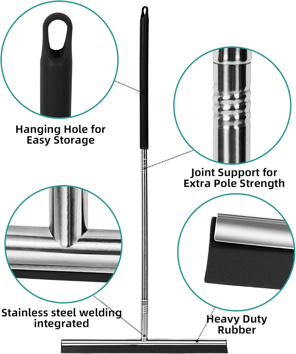 - 【Ergonomic Design】:Unlike traditional brooms, the scraping broom fits tight to the surface and is ideal for moving water across the floor. The rubber squeegee head is angled to the handle for easier use, and the top of the handle is wrapped in non-slip foam for a comfortable grip, ensuring minimal hand fatigue.