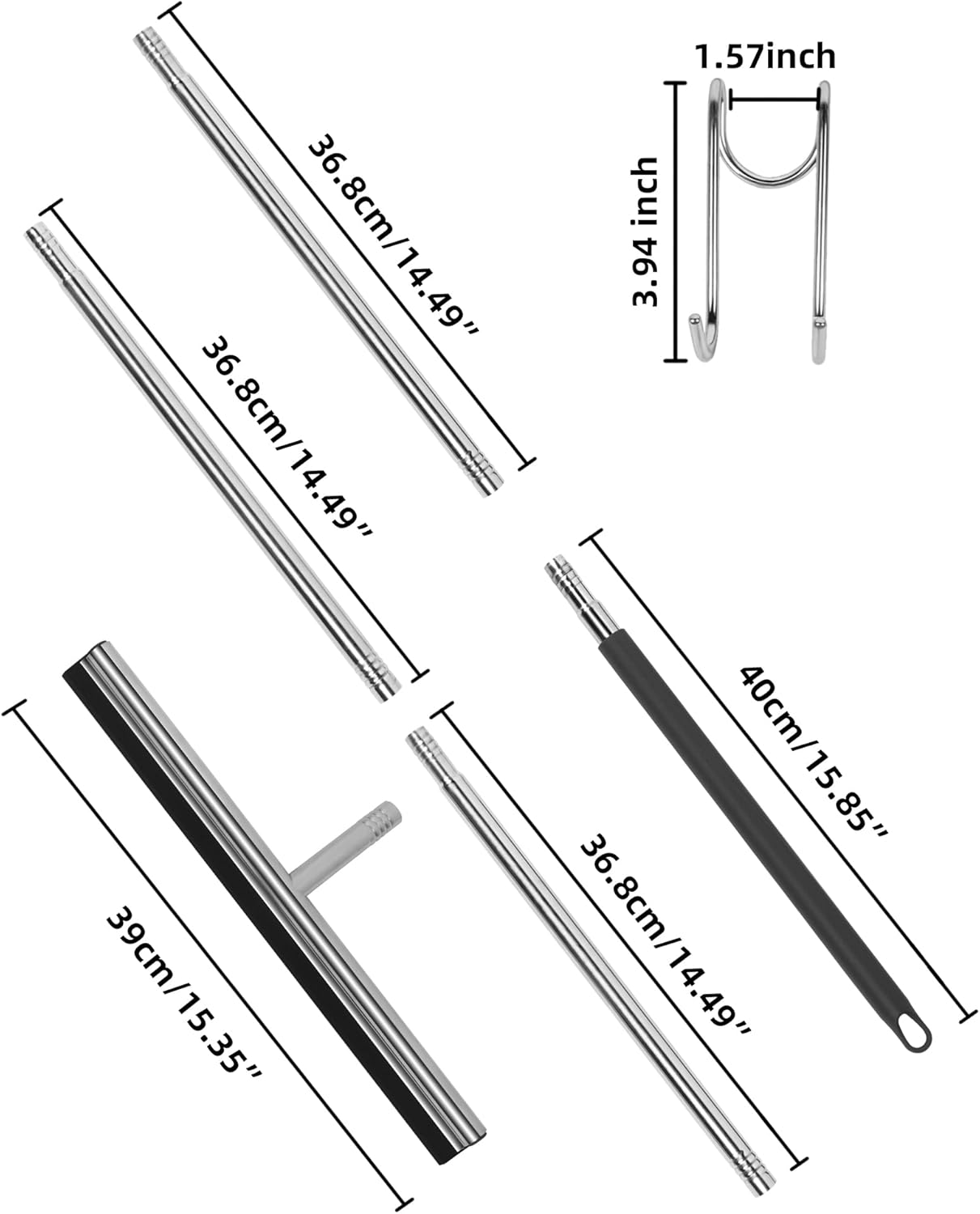 - 【No more bending while cleaning】:This rubber broom features a sturdy steel handle that can be adjusted in length from 18 inches to 59 inches by removing or adding sections, allowing you to clean easily without stressing your back, you can also easily reach windows or any high area to remove water and dirt. In addition, it has a hanging holes for easy storage.