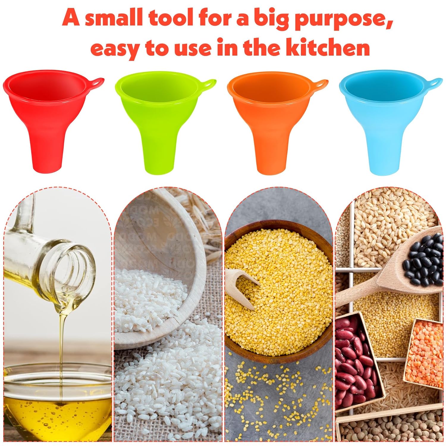4Pcs Funnels for Kitchen Use Filling Bottles Silicone Funnel Wide Mouth Funnel Multi Color Flexible Condiment Funnel Kitchen Gadgets Accessories for Filling Water Bottle Liquid Transfer