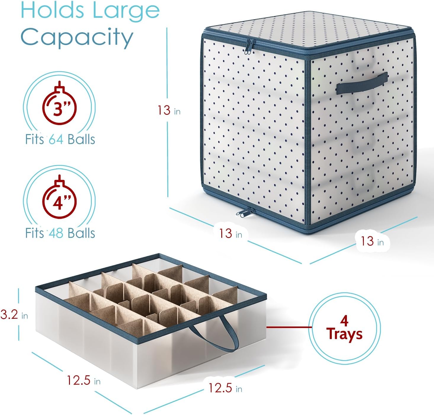 - Adjustable & Easy-To-Remove Dividers – Adjustable strong dividers make it easy to make space for any size ornament you need. Plus, exclusive finger slots on the dividers make them a breeze to remove without the hassle other Christmas storage boxes give you. They easily hold minimum 64 balls.